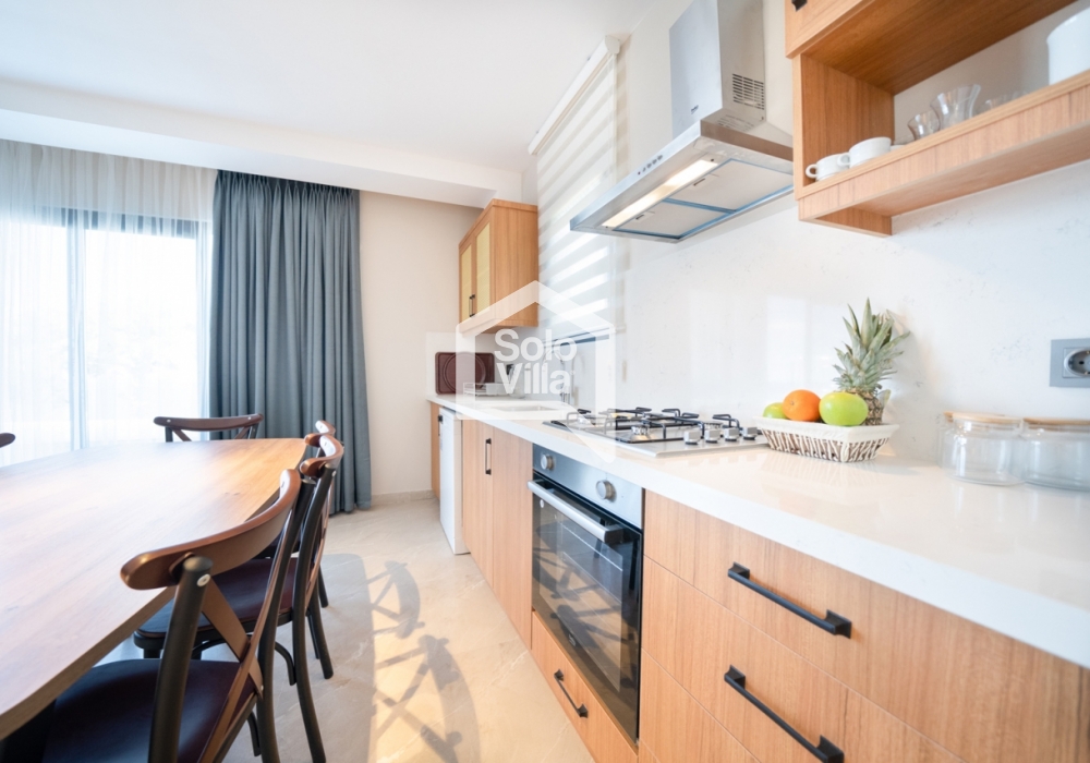 Die 2023 fertiggestellte Villa ist Teil eines Konzepts mit insgesamt 12 nebeneinander gelegenen Villen mit identischen Merkmalen, verfügbar als 1+1- und 2+1-Optionen. Sie eignet sich hervorragend für Flitterpaare und Kernfamilien, die gemeinsam Urlaub machen möchten. Die Villa ist mit hochwertigen und modernen Möbeln eingerichtet und vollständig mit allen notwendigen Annehmlichkeiten ausgestattet, sodass Sie sich wie zu Hause fühlen.