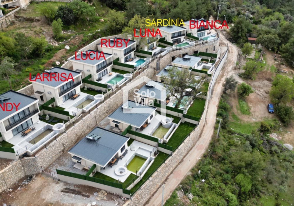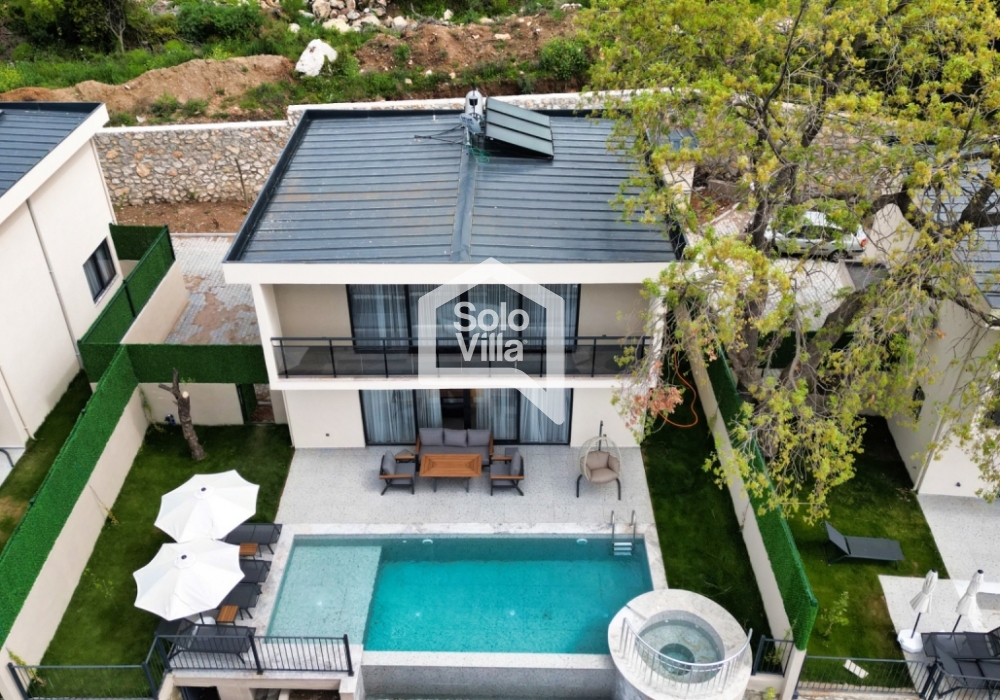 Die 2023 fertiggestellte Villa ist Teil eines Konzepts mit insgesamt 12 nebeneinanderliegenden Villen mit identischen Merkmalen, verfügbar als 1+1- und 2+1-Optionen. Sie eignet sich hervorragend für Flitterpaare und Kernfamilien, die gemeinsam Urlaub machen möchten. Die Villa ist mit hochwertigen und modernen Möbeln ausgestattet und verfügt über alle notwendigen Annehmlichkeiten, damit Sie sich wie zu Hause fühlen.