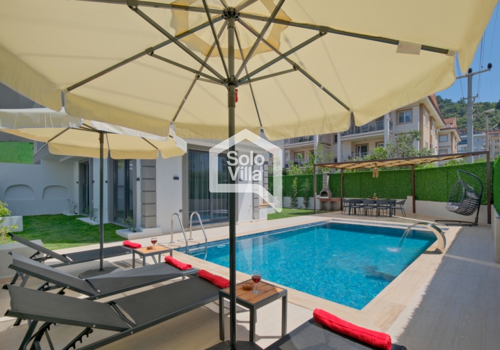 Die Solo Villa Deniz, im Zentrum von Fethiye gelegen, ist eine stilvolle und komfortable Ferienvilla mit 3 Schlafzimmern für bis zu 6 Gäste. Ideal für große Familien und Freundesgruppen, bietet die Villa ein ruhiges Urlaubserlebnis mit privatem Pool, liebevoll gestalteten Wohnbereichen und einem großzügigen Wohnzimmer.