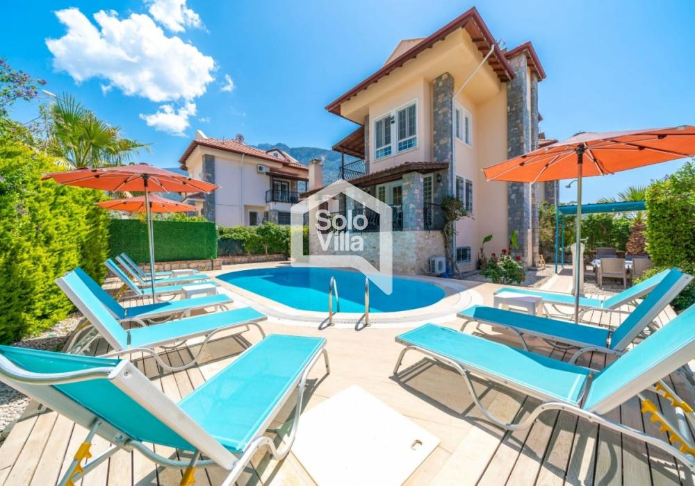 Villa Solo Garden ist eine komfortable Ferienvilla mit privatem Pool in der Region Ovacık, Fethiye. Mit einer Kapazität von 10 Personen, 5 Schlafzimmern und großzügigen Wohnbereichen ist sie ideal für große Familien und Gruppen von Freunden.