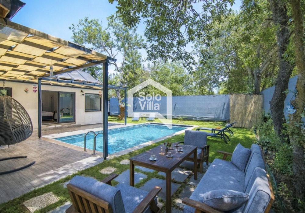 Direkt neben der Villa befindet sich die Villa Solo Simya 1 mit demselben Design- und Architekturkonzept. Je nach Verfügbarkeit können beide Villen zusammen gemietet werden, ideal für große Familien und Freundesgruppen.