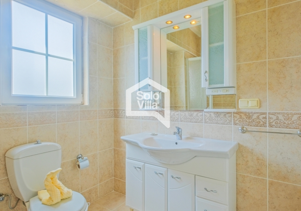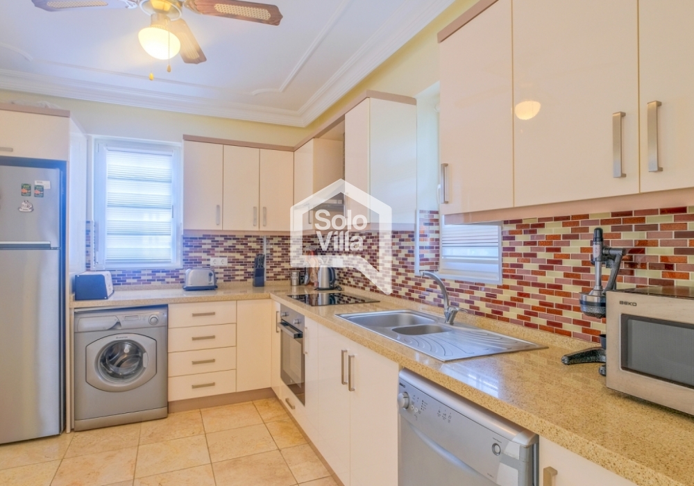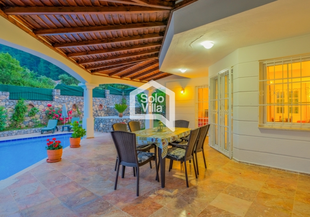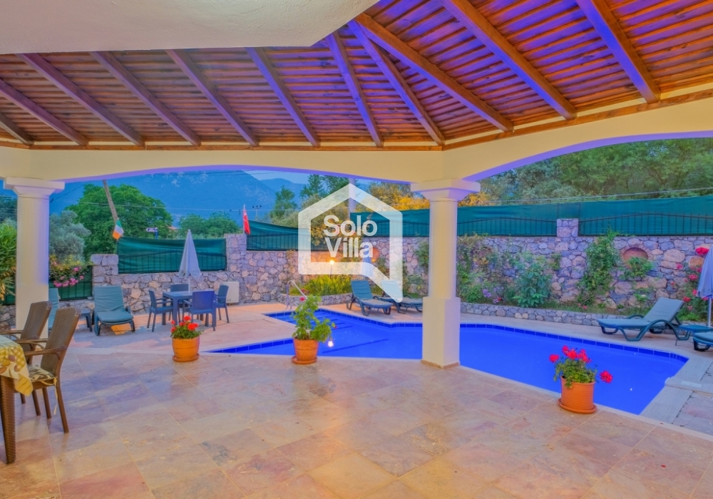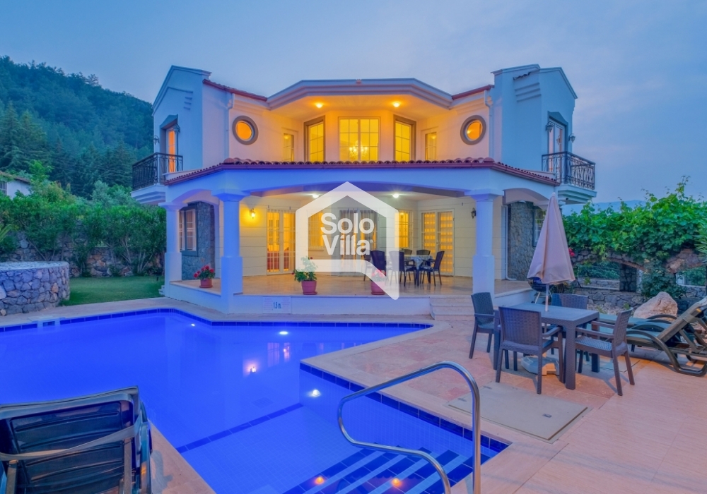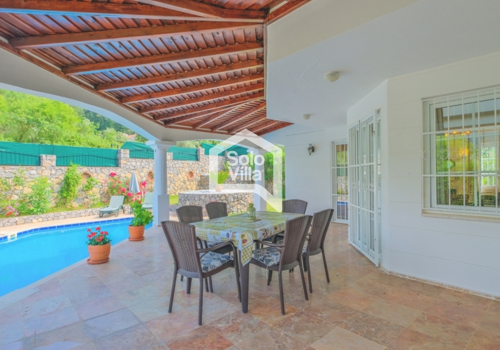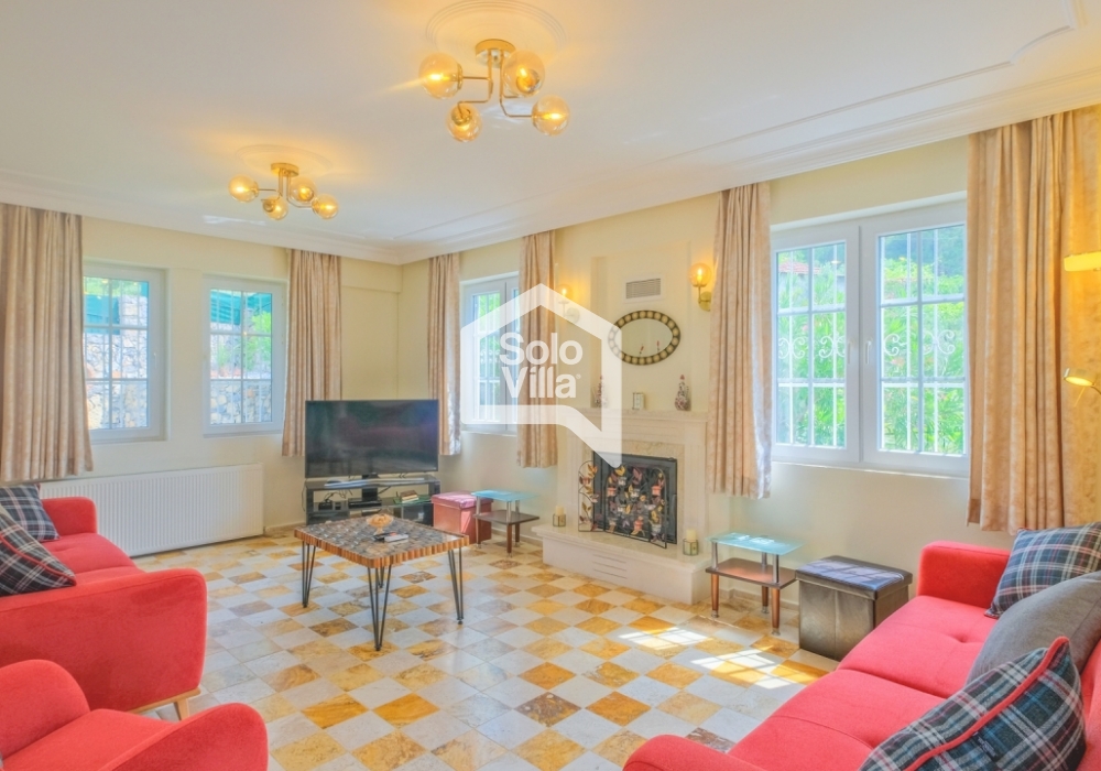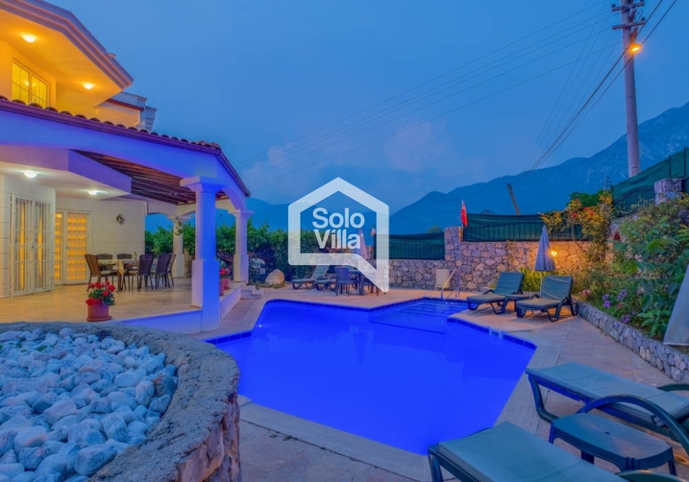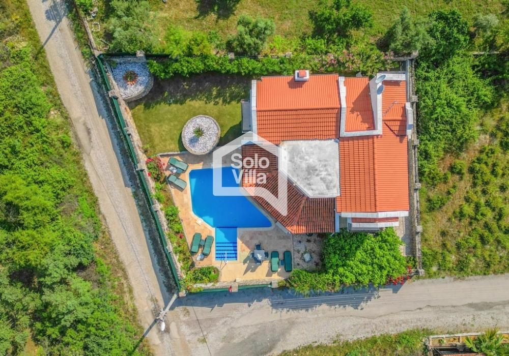 This charming and spacious three-bedroom villa is ideal for those looking to relax and enjoy the natural beauty of the surroundings, away from the hustle and bustle. Perfect for guests seeking peace and privacy, the villa features a modern and comfortable living room that opens onto a dining terrace, a fully equipped separate kitchen, three bedrooms (one of which is an en-suite), one en-suite bathroom, two shared bathrooms, a sun terrace, a private (non-heated) swimming pool, a landscaped garden, and a barbecue area. The villa is just a few minutes from the village center, where you can find restaurants and shops. Calis Beach and Fethiye city center are a 17-minute drive away, and the world-famous Oludeniz Beach is located 30 minutes away by car.