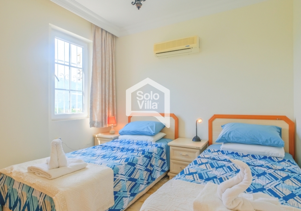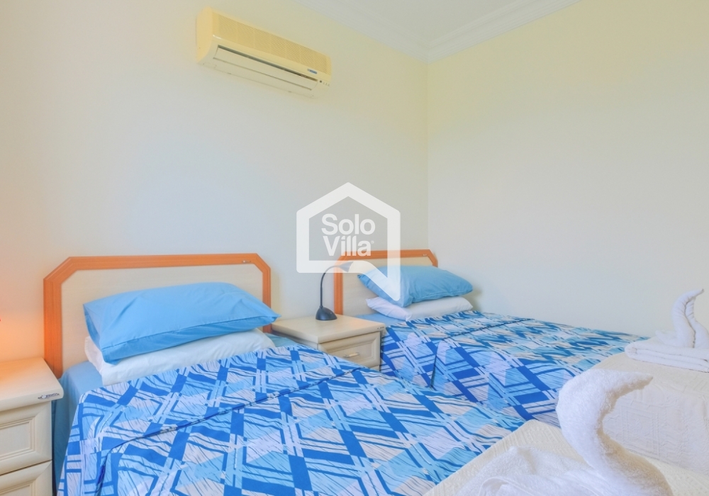Bedroom 3: Two single beds, air conditioning, wardrobe, nightstand