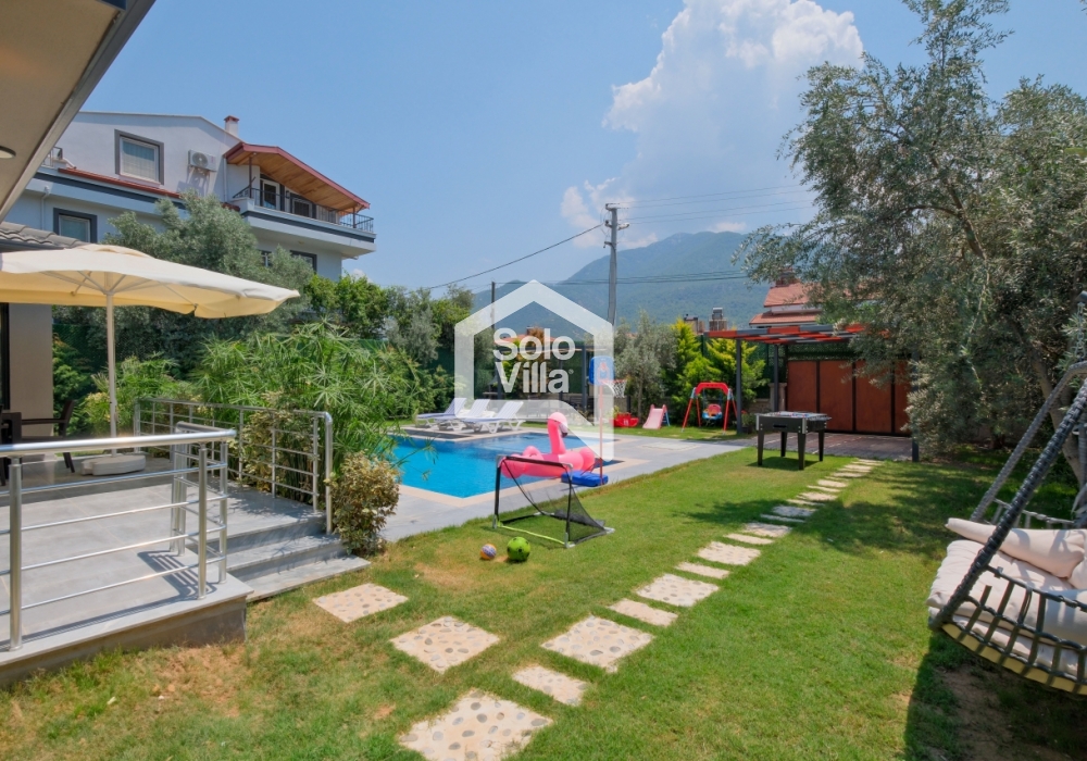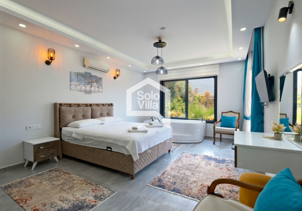 Just 4 km from the city center, you can easily reach Fethiye’s beaches, restaurants, and entertainment spots. Book your unforgettable holiday at Villa Solo Tanus today!