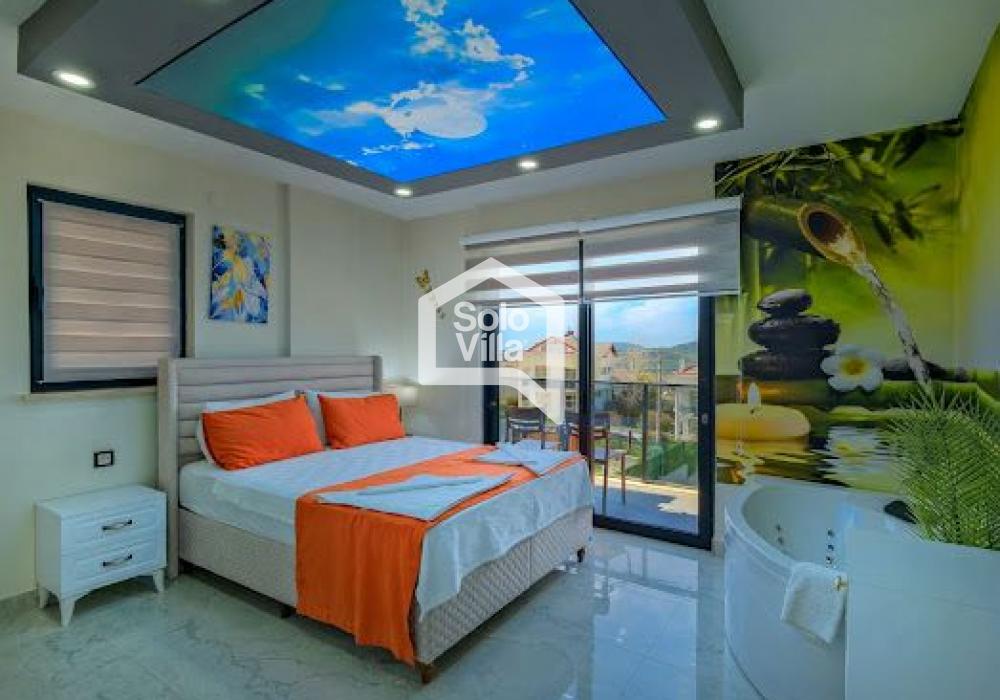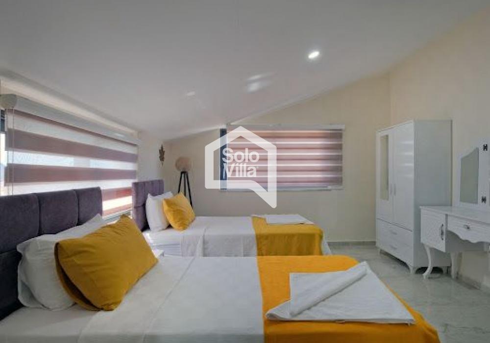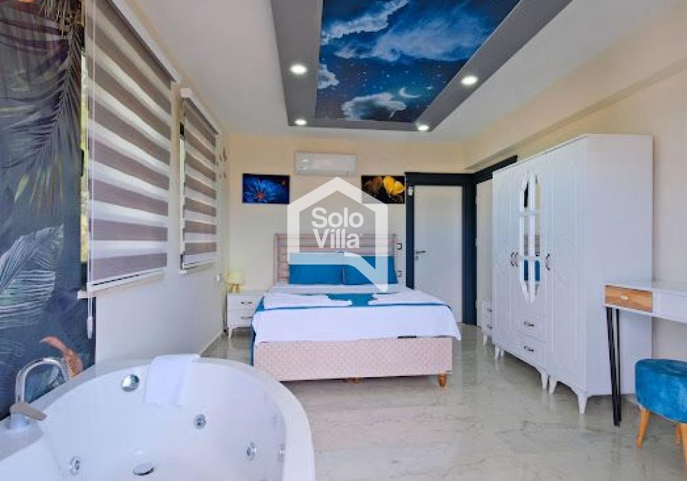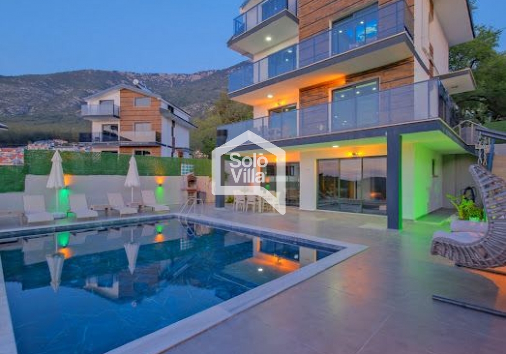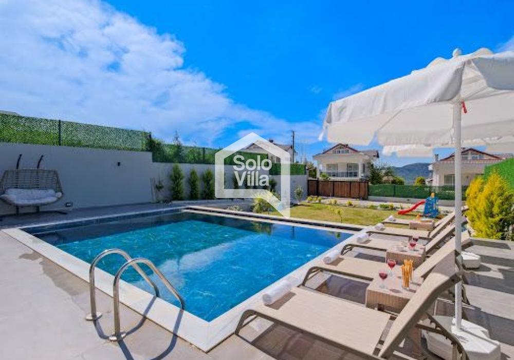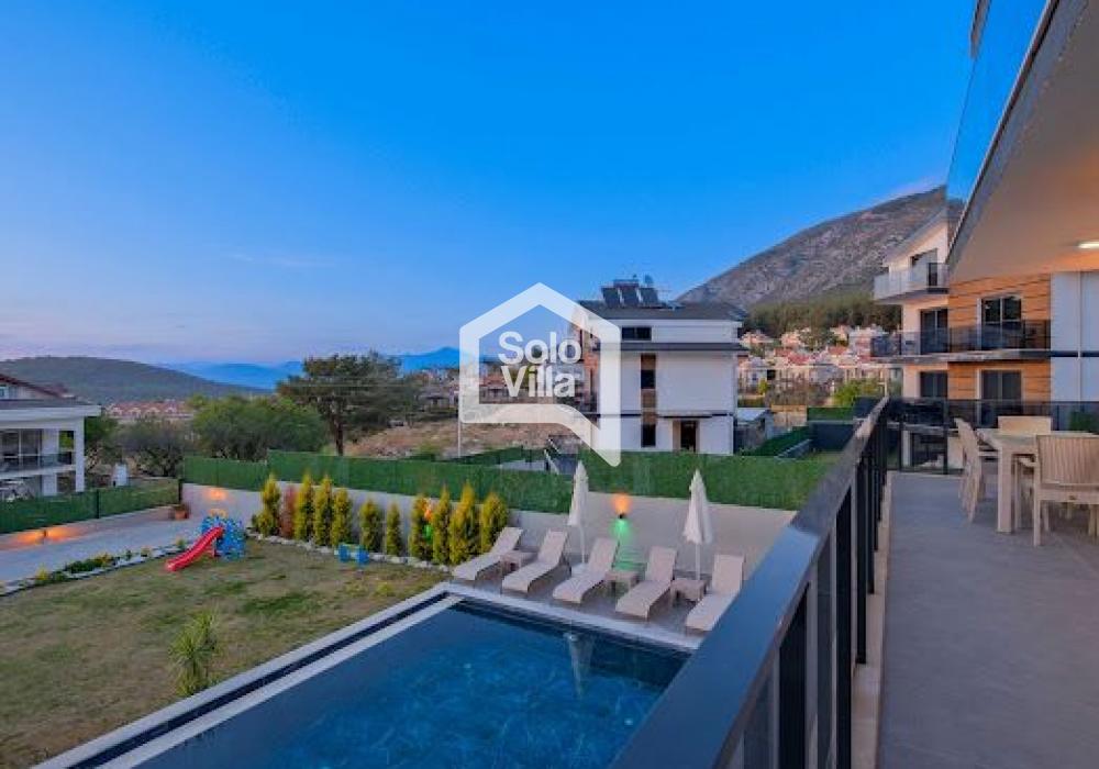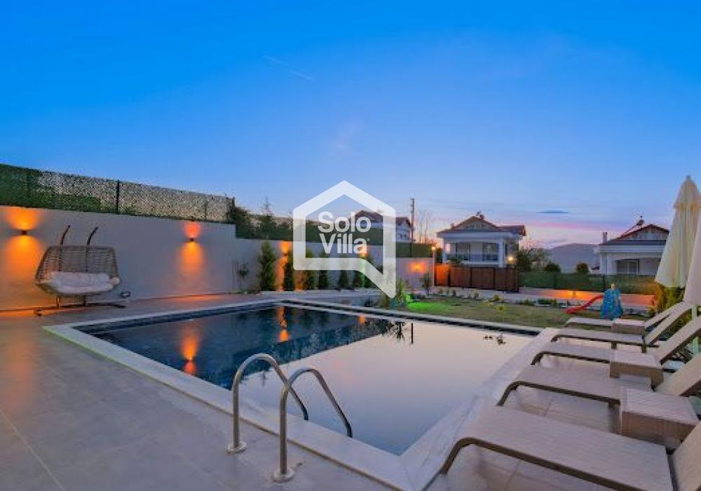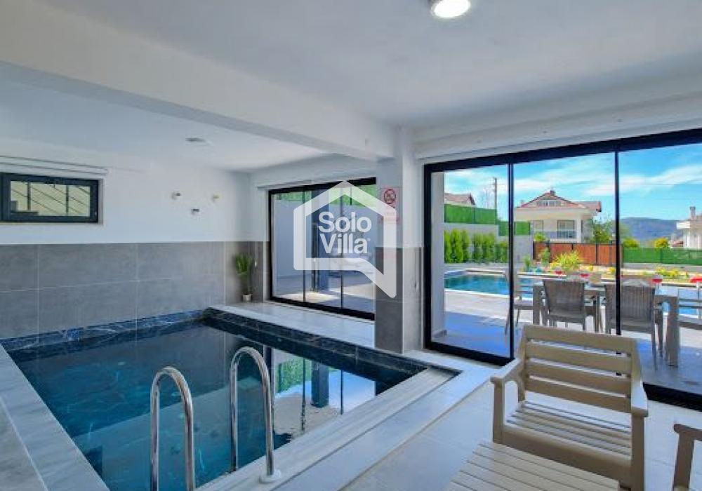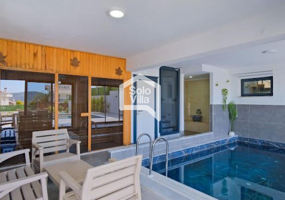 Villa Solo Yiğit is located in the Ovacık area of Fethiye and offers a modern design combined with a luxury concept, providing a comfortable holiday experience. With its hammam, sauna, and indoor heated pool, it ensures both a relaxing and enjoyable stay.