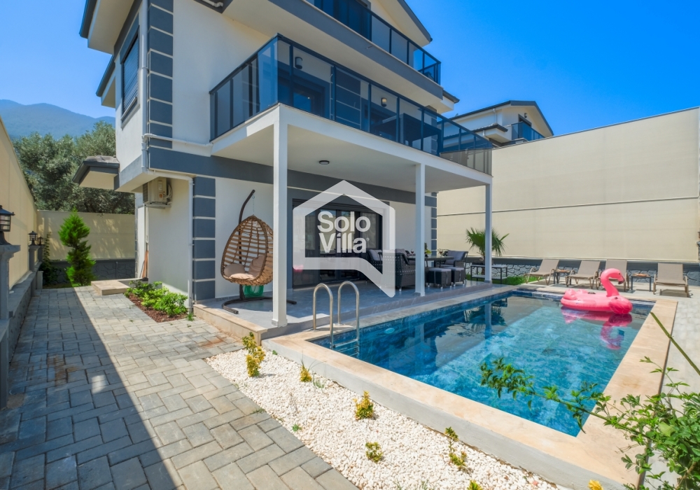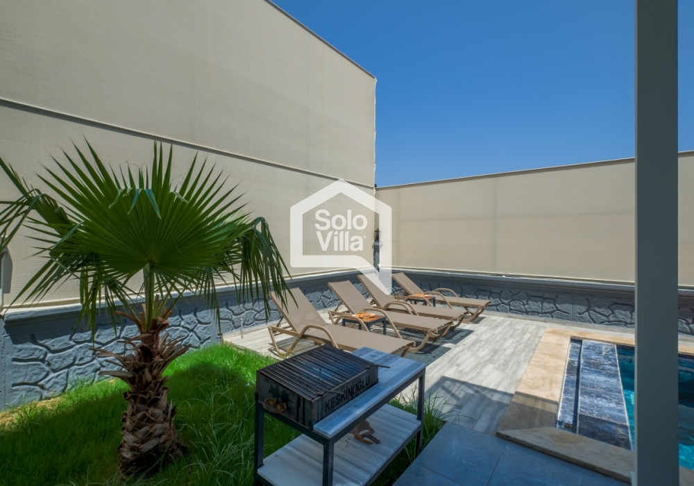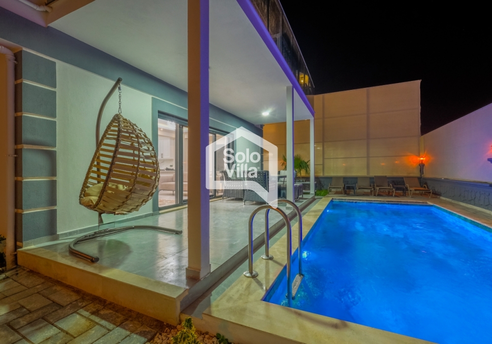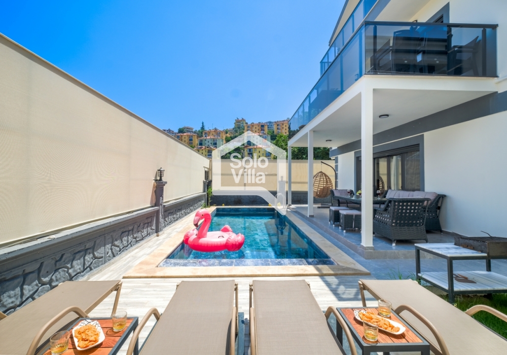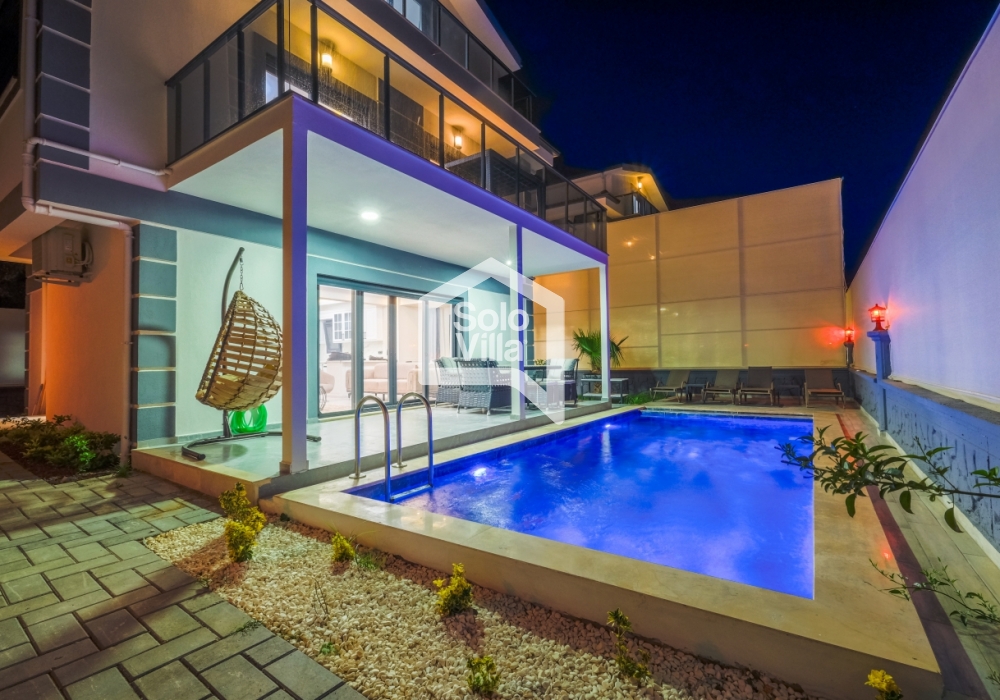 Con piscina privada, amplio jardín y diseño interior moderno, Solo Villa Ella2 es la opción ideal para quienes desean combinar relajación y entretenimiento en Fethiye. ¡Reserve ahora y disfrute de unas vacaciones de lujo exclusivas!