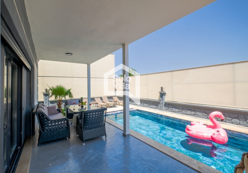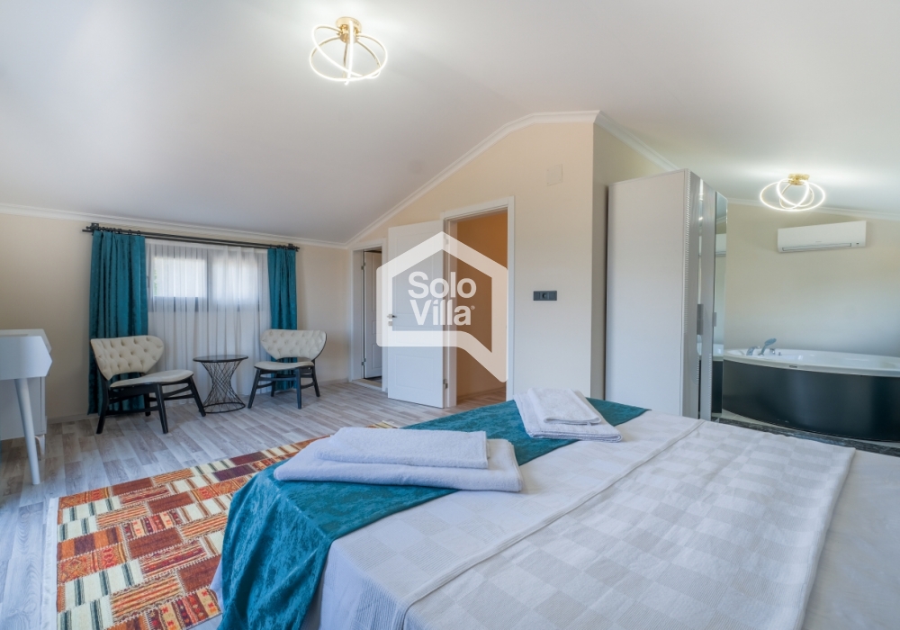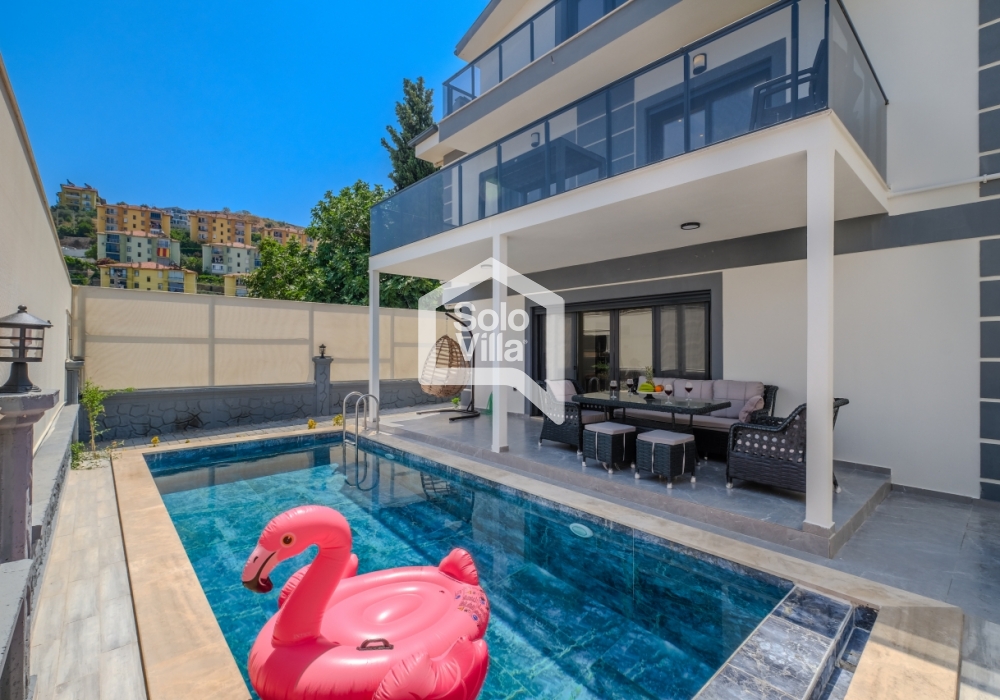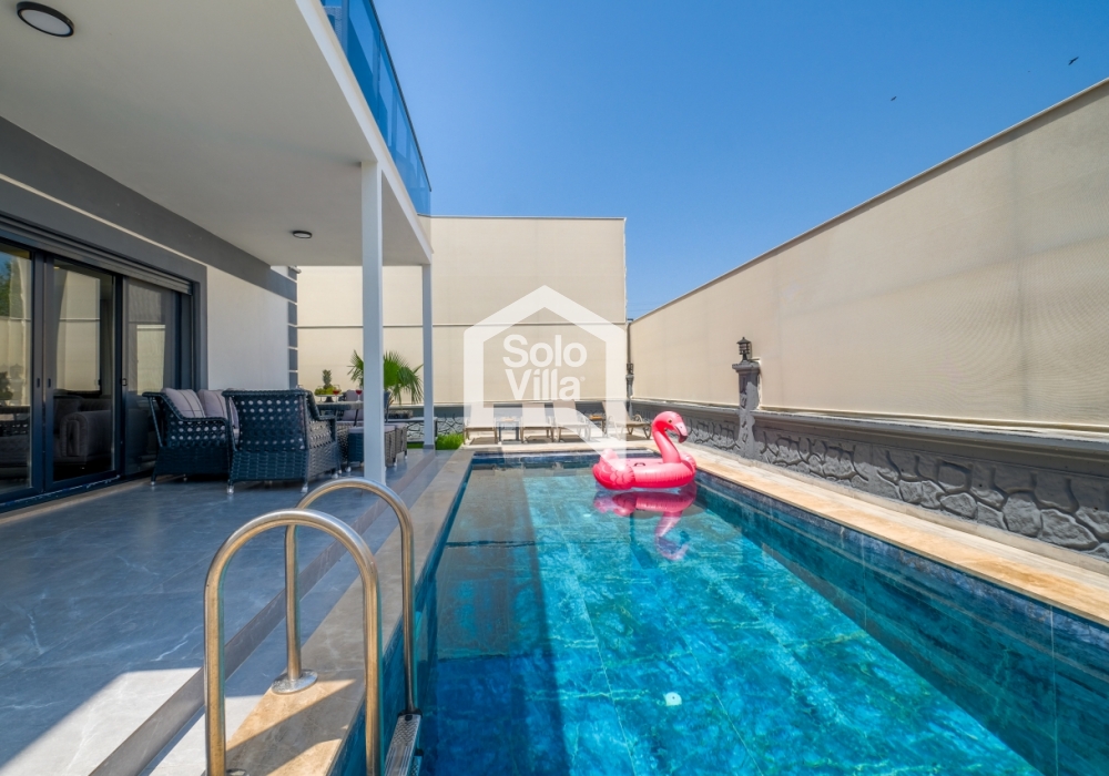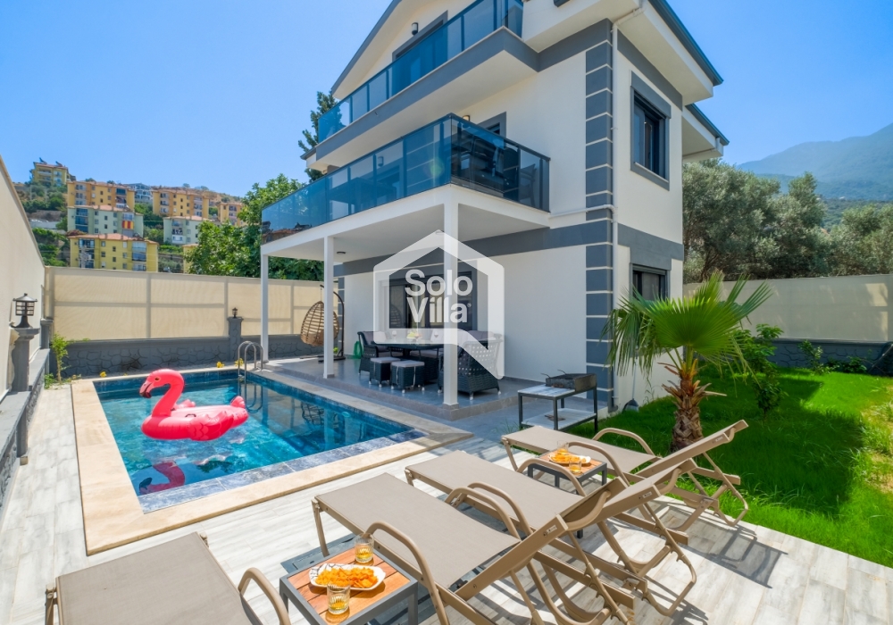 Con piscina privada, amplio jardín y diseño interior moderno, Solo Villa Ella2 es la opción ideal para quienes desean combinar relajación y entretenimiento en Fethiye. ¡Reserve ahora y disfrute de unas vacaciones de lujo exclusivas!