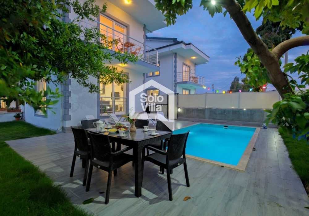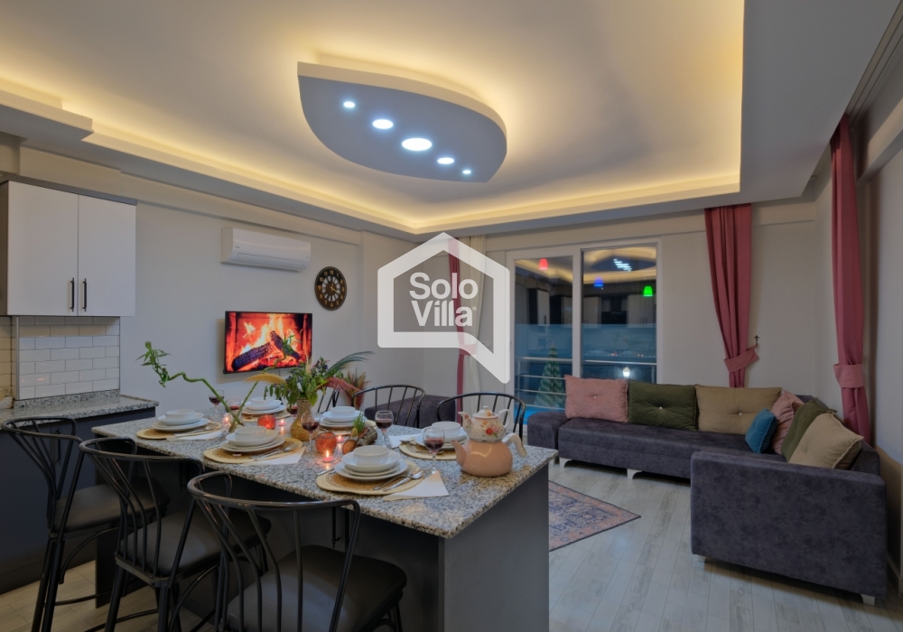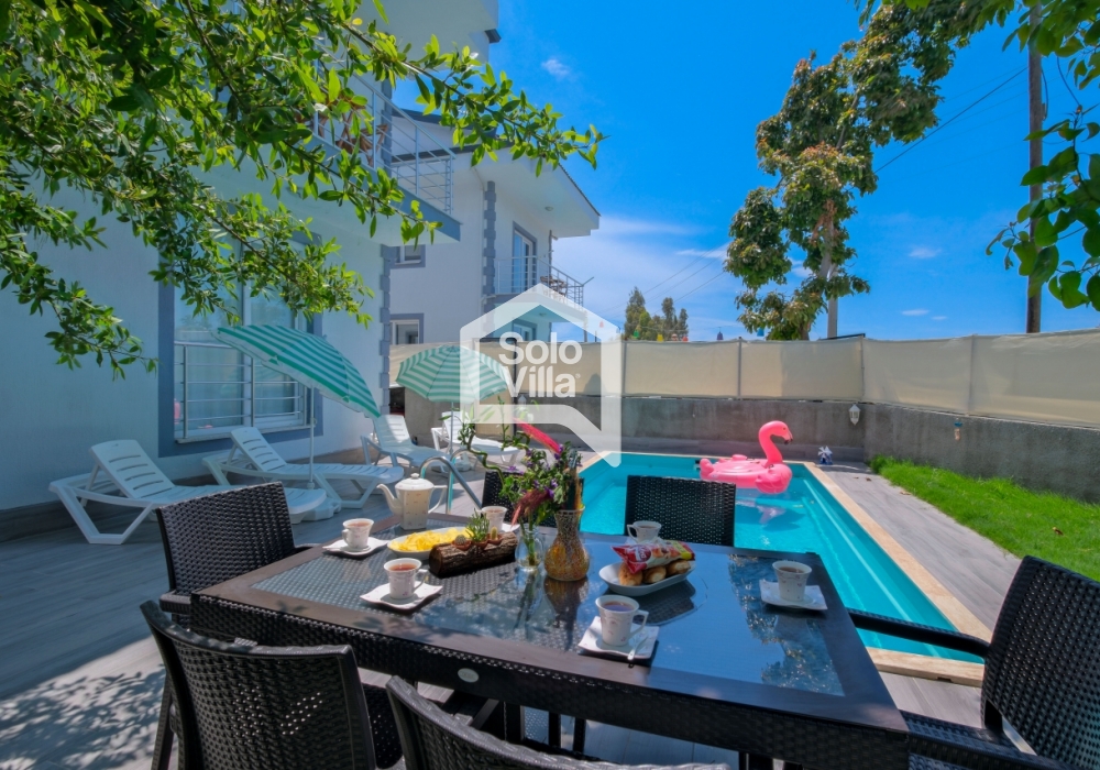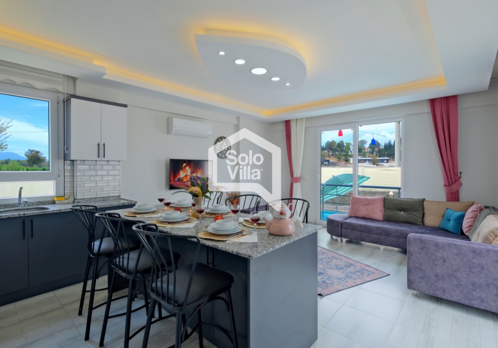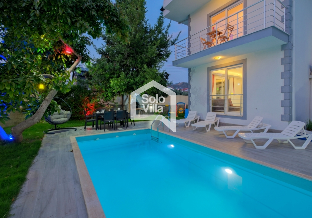 Villa Solo Ellie es una villa vacacional moderna y confortable con capacidad para 6–7 personas, ubicada a solo 4–5 minutos de Playa de Çalış. Finalizada en 2022, ofrece una estancia tranquila gracias a su entorno silencioso y su ubicación céntrica.