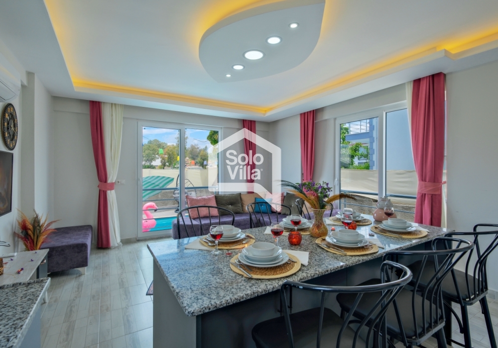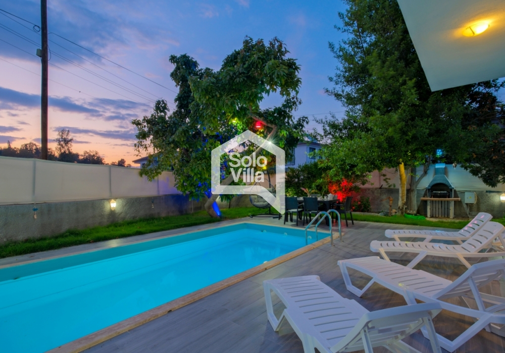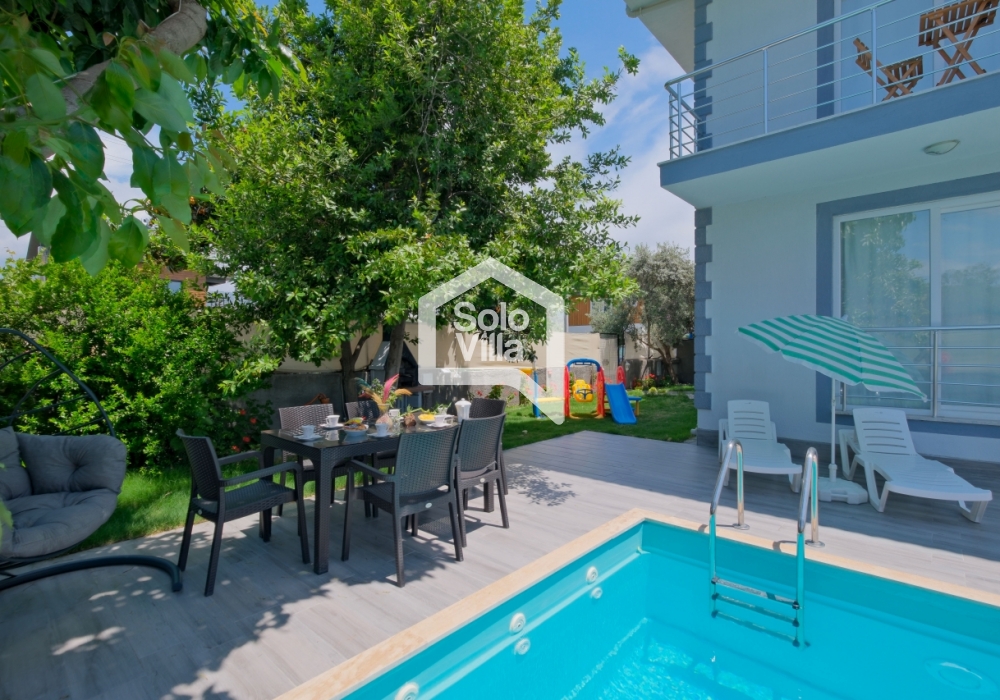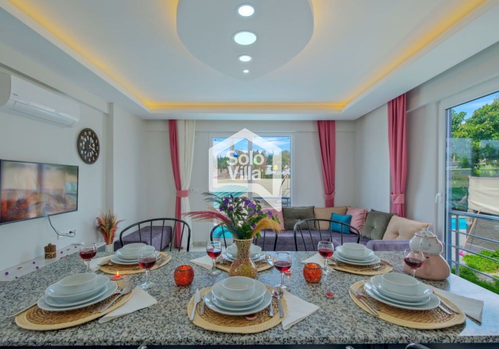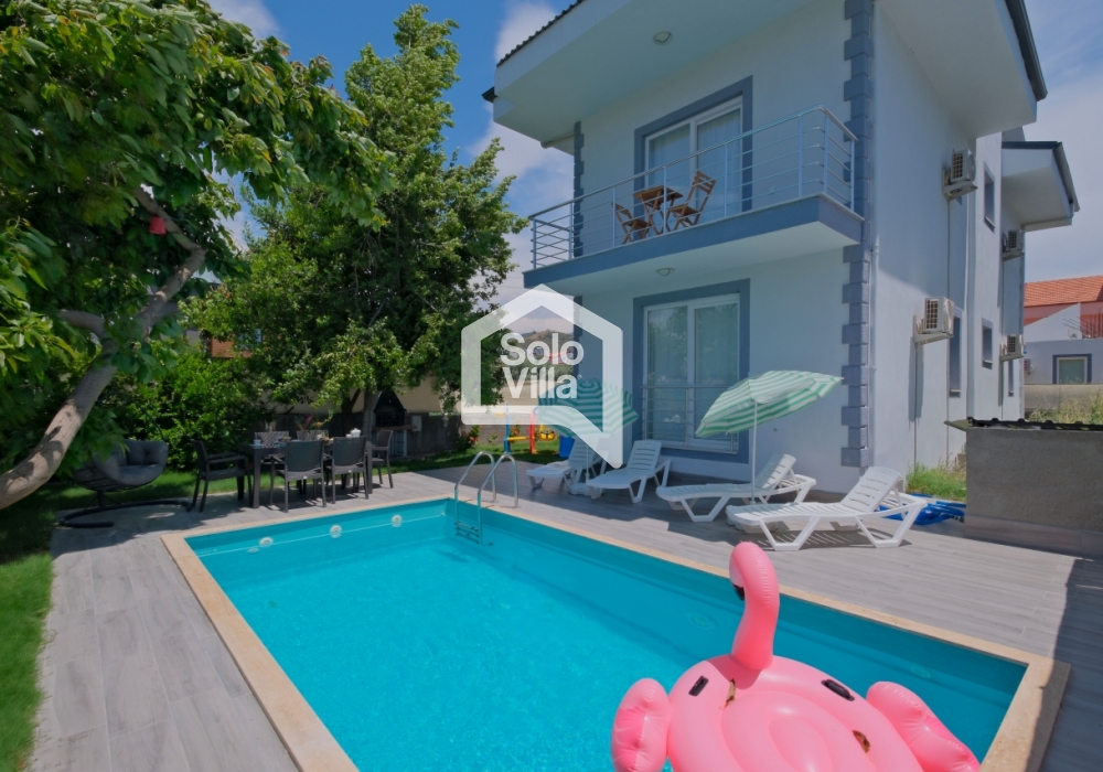 Villa Solo Ellie es una villa vacacional moderna y confortable con capacidad para 6–7 personas, ubicada a solo 4–5 minutos de Playa de Çalış. Finalizada en 2022, ofrece una estancia tranquila gracias a su entorno silencioso y su ubicación céntrica.