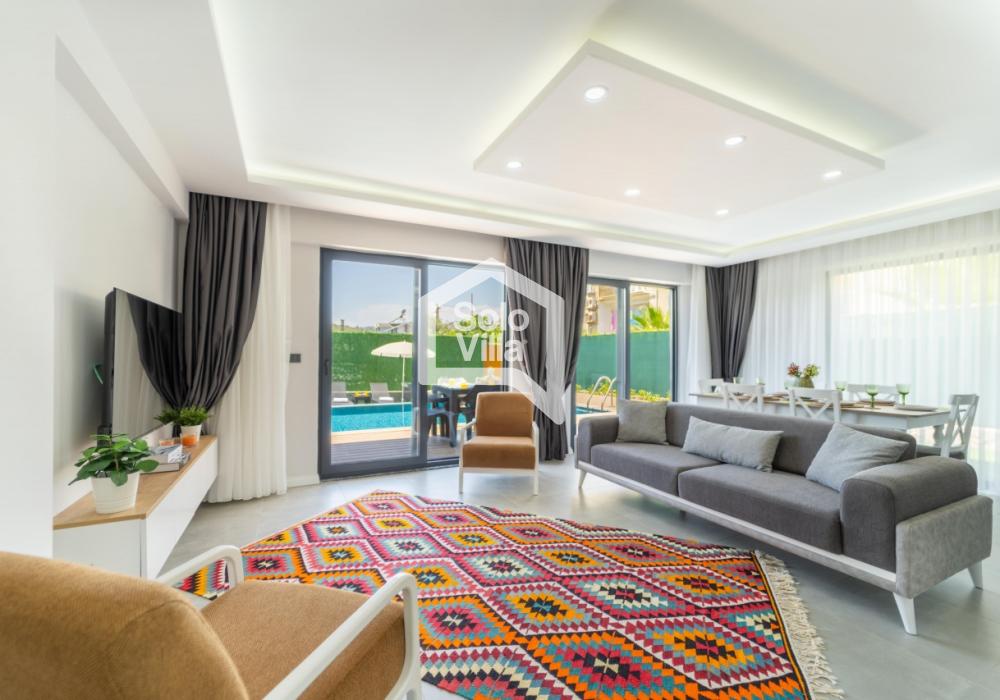 Villa Solo Polly 1 es una villa de lujo 3+1 ubicada en la zona de Hisarönü en Fethiye, con capacidad para 6 adultos y 1 bebé. Se encuentra a aproximadamente 10 minutos en coche de Ölüdeniz y destaca por su ubicación céntrica.