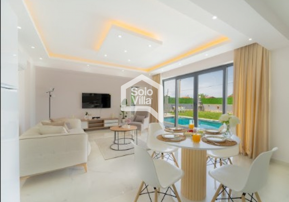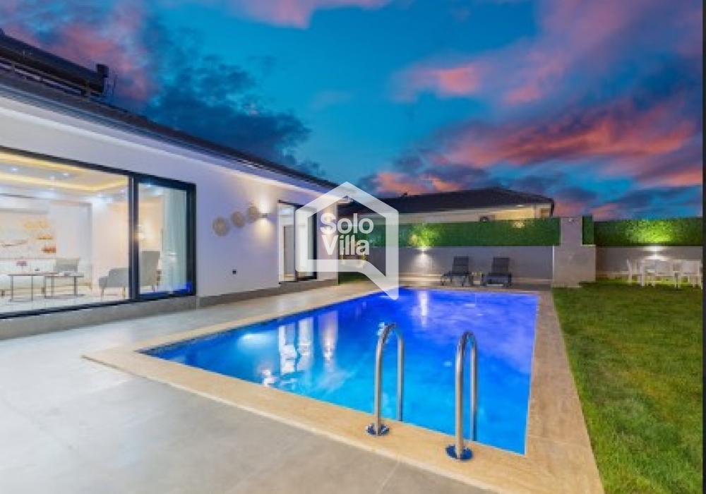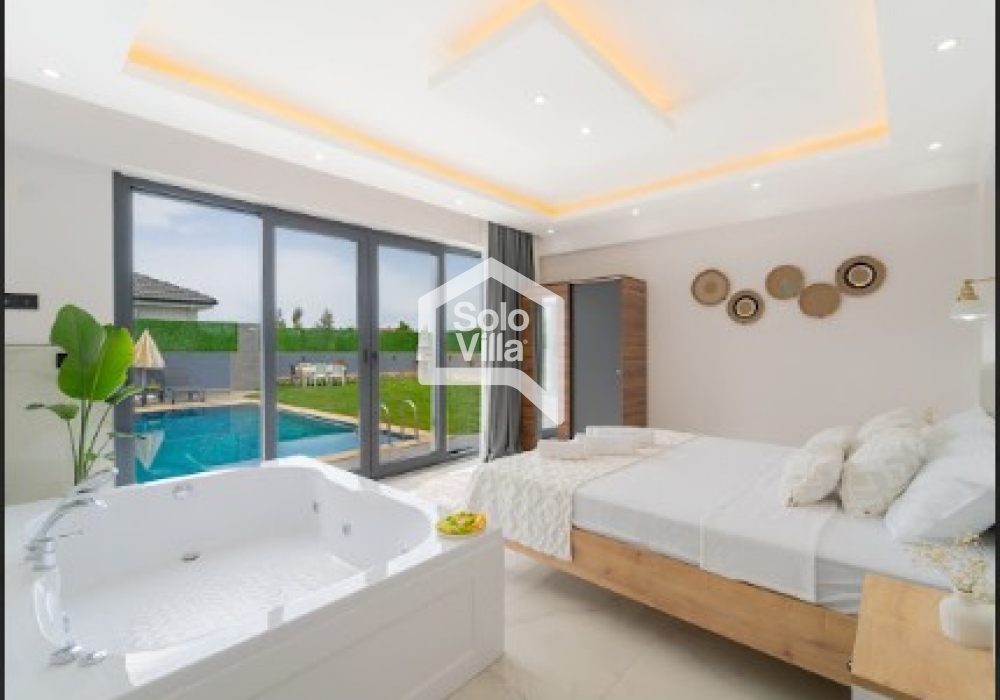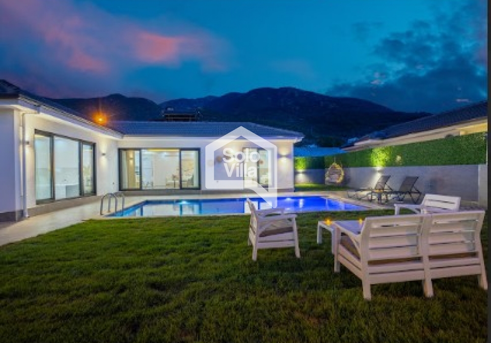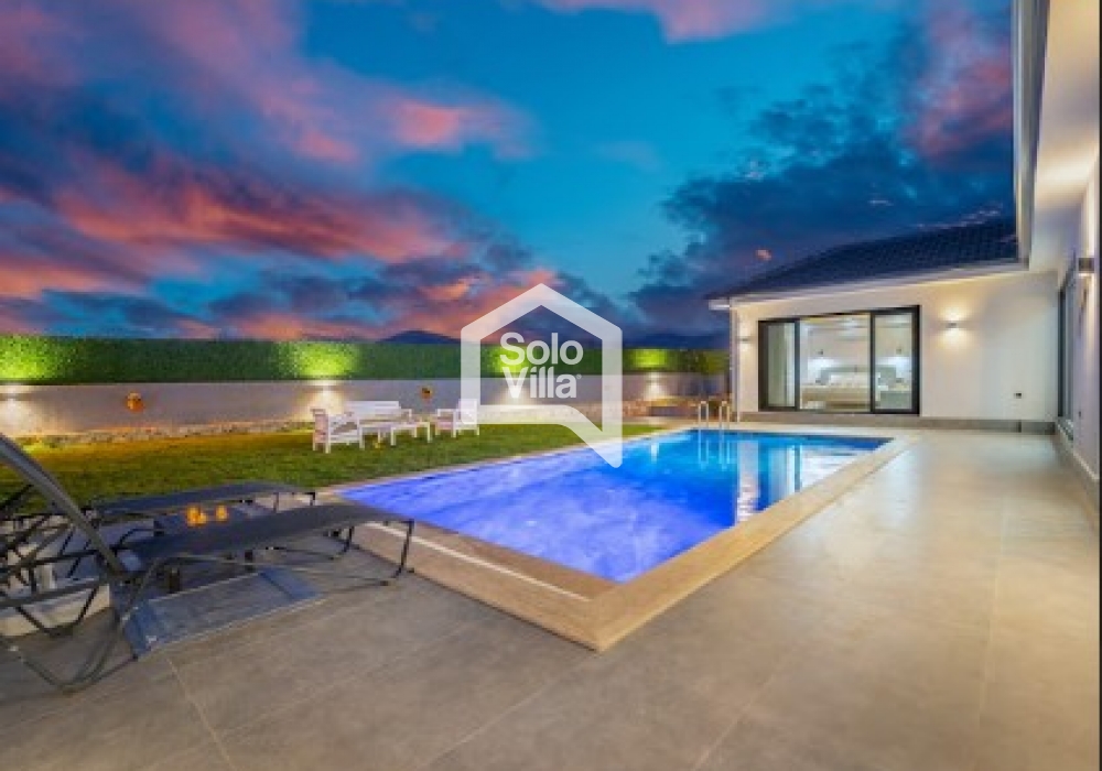 Villa Solo Veloria es una villa moderna con piscina privada completamente protegida, ubicada en Fethiye y rodeada de naturaleza. Con un diseño interior confortable y totalmente equipada, es ideal para familias nucleares y grupos pequeños.