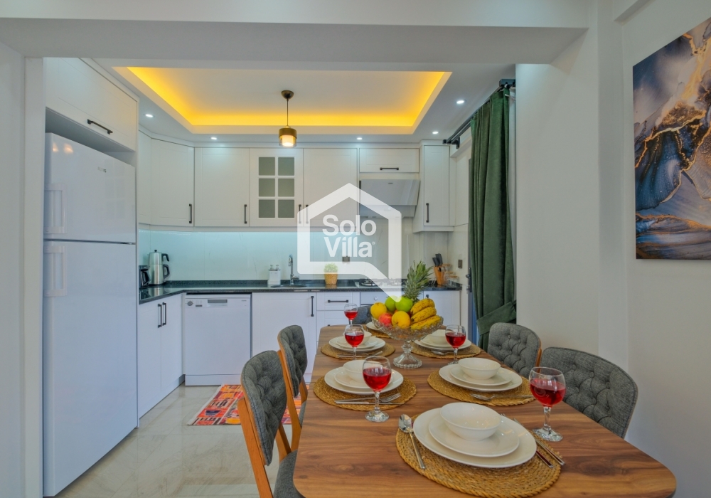 Villa SU se encuentra a 200-350 metros de mercados, supermercados, farmacias, fruterías, pastelerías y restaurantes, a 350 metros del centro de Seydikemer y a 1 km del hospital.