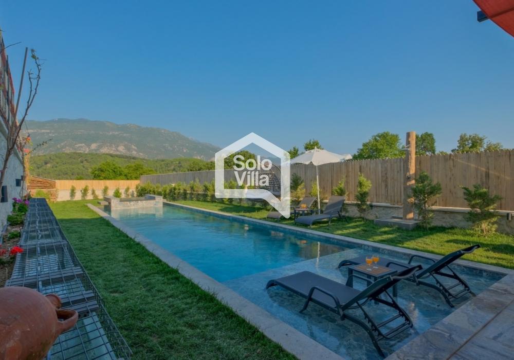 Située dans le quartier paisible et verdoyant de Demirler à Fethiye, Villa Faik Bey Konağı offre une escapade privée pour amis ou petites familles avec une capacité pour quatre personnes, deux chambres et deux salles de bain. Bien qu’à environ 35 km de la mer, vous pouvez profiter de la tranquillité sans sortir grâce aux vues naturelles, au jardin et à la piscine privée.