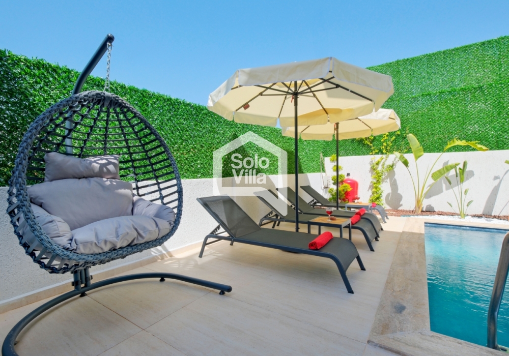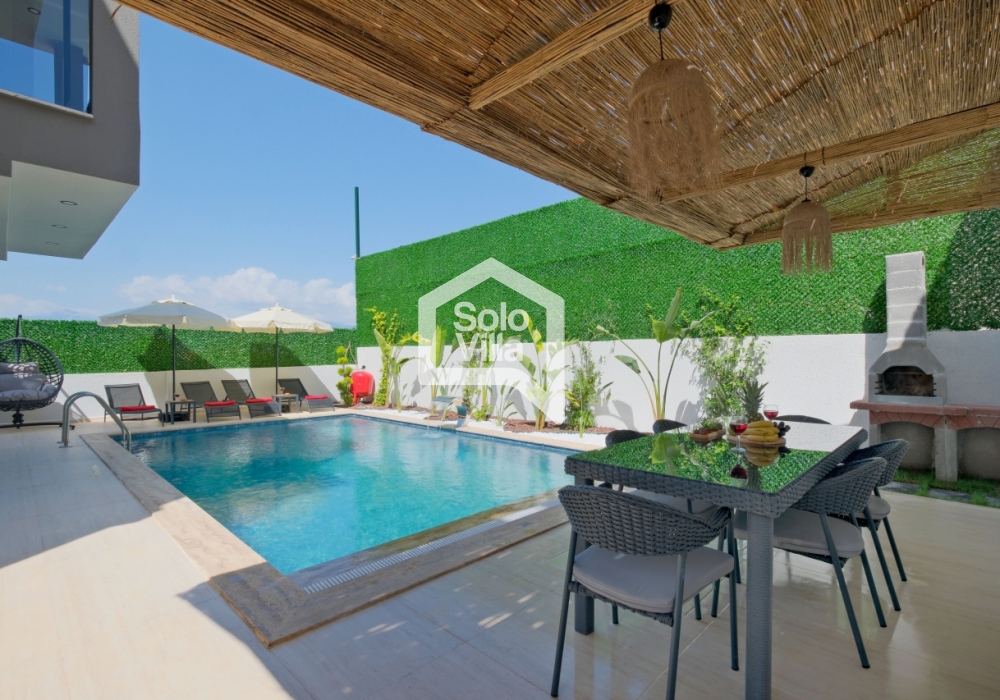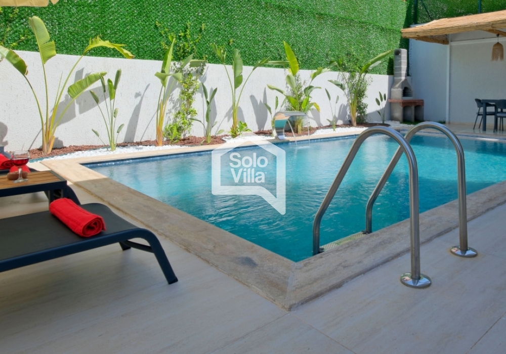 La villa dispose d’une piscine privée chauffée, permettant aux invités de profiter de la baignade tout au long de l’année. La zone de la piscine comprend de larges transats, un coin salon et un espace barbecue, offrant une atmosphère relaxante à tout moment de la journée. De plus, le jacuzzi de la villa permet aux invités de se détendre complètement après une longue journée.