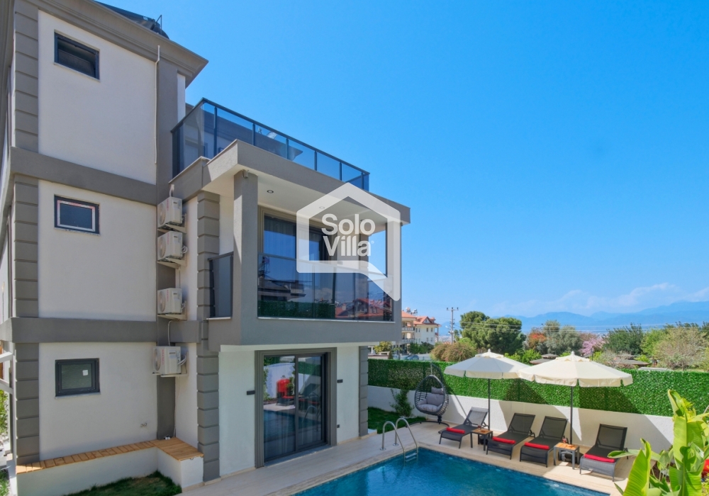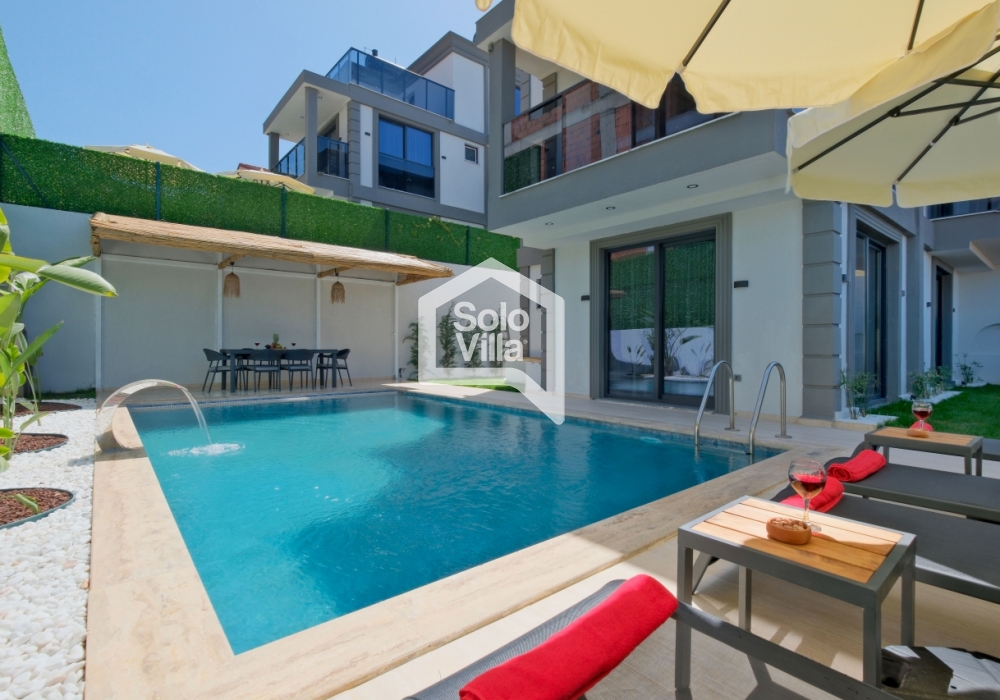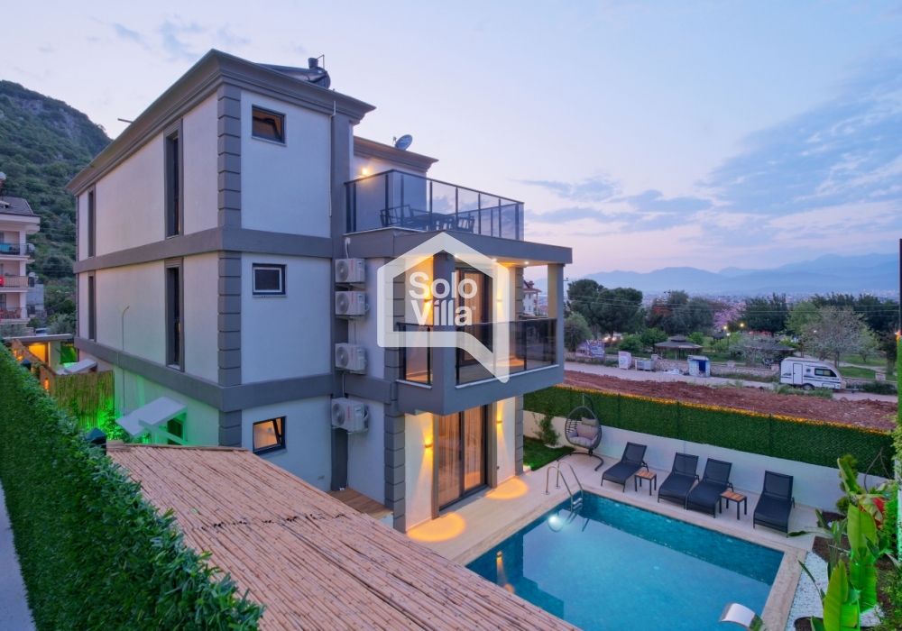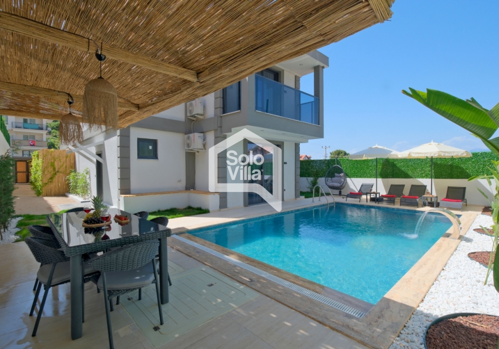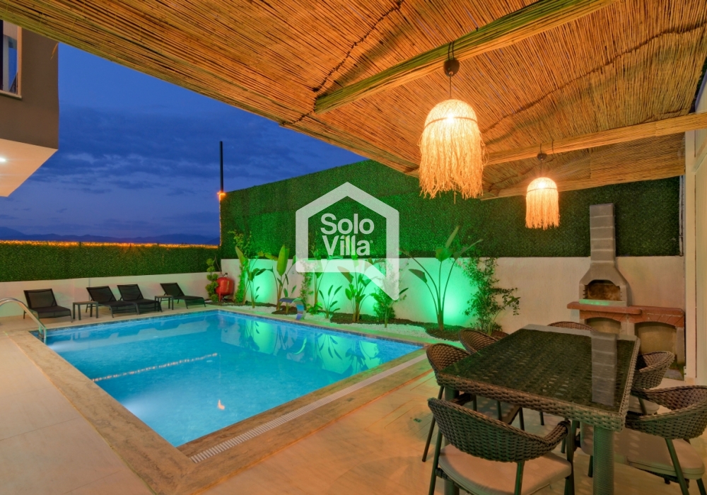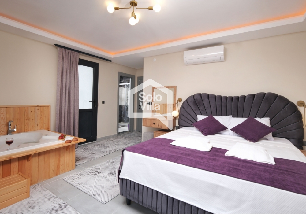 En résumé, Villa Solo Kum, avec ses équipements de luxe tels que piscine chauffée et jacuzzi, est le choix idéal pour ceux qui recherchent une expérience de vacances confortable, élégante et agréable à Fethiye.