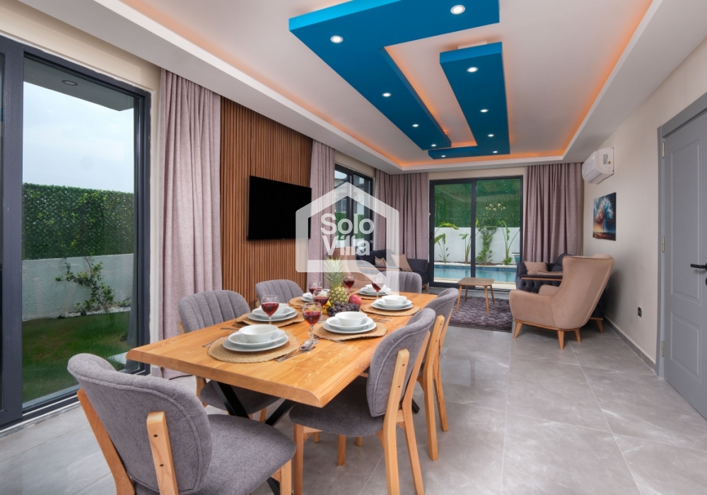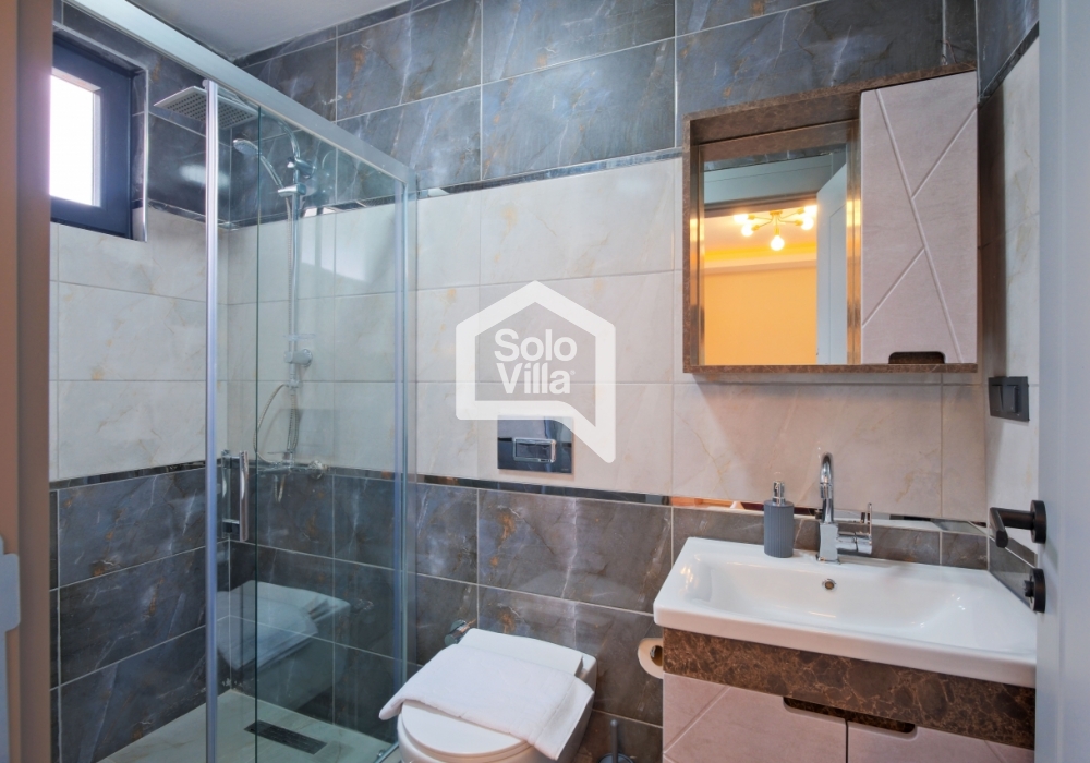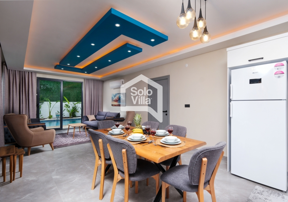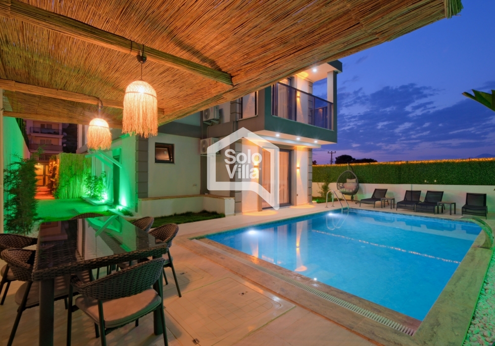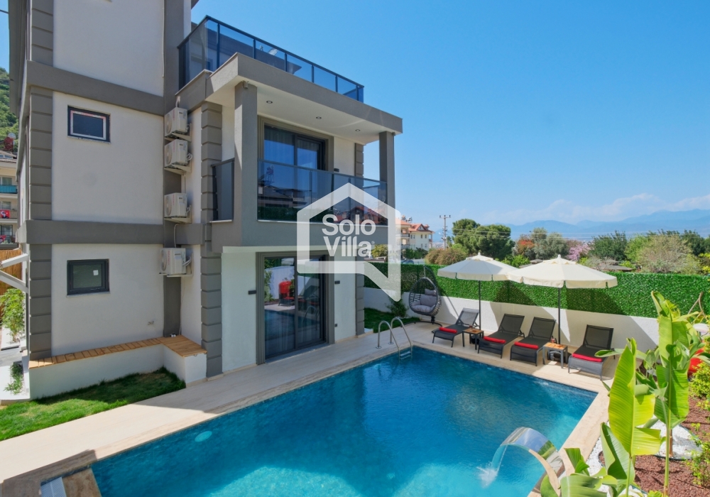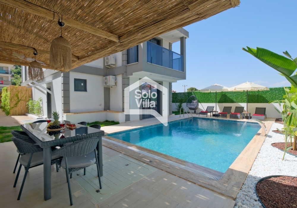 En résumé, Villa Solo Kum, avec ses équipements de luxe tels que piscine chauffée et jacuzzi, est le choix idéal pour ceux qui recherchent une expérience de vacances confortable, élégante et agréable à Fethiye.