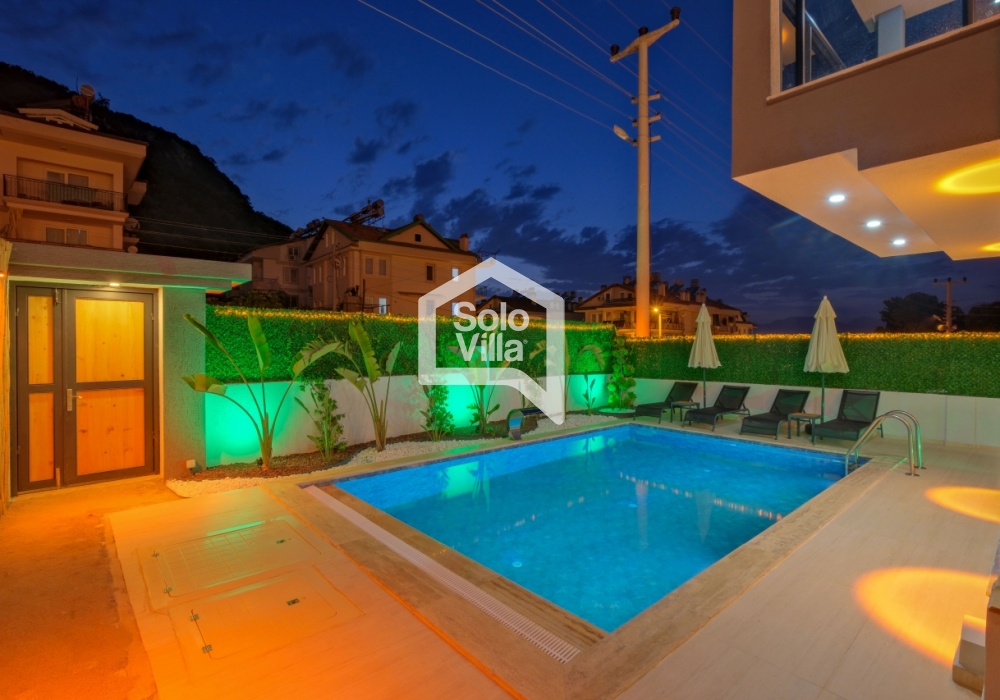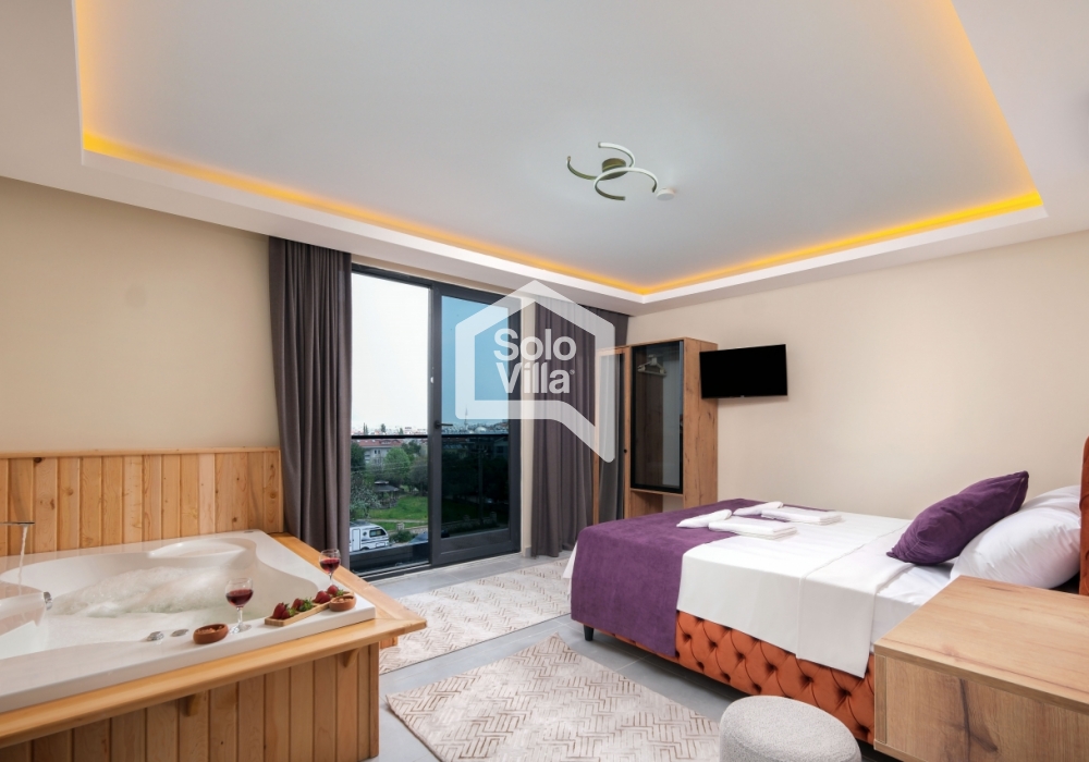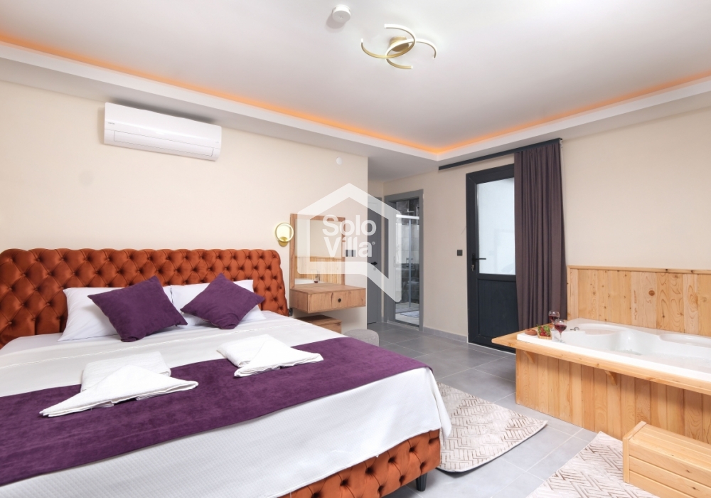 Avec sa décoration moderne, son confort élevé et son emplacement central, Villa Solo Sade est un choix idéal pour les clients recherchant des vacances luxueuses et paisibles à Fethiye. Sa piscine privée, son jacuzzi et son grand jardin offrent une expérience complète pour la détente et les activités sociales.