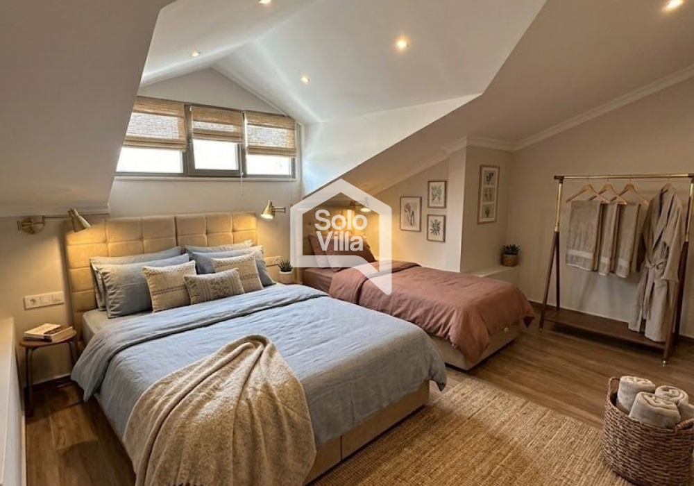 Villa Solo Valora est une villa de luxe située dans le quartier de Çalış à Fethiye, à distance de marche de la mer et du centre. Avec ses 4 chambres et une capacité d’accueil de 8 personnes, elle est idéale pour les grandes familles et les groupes d’amis, notamment pour ceux qui souhaitent séjourner en centre-ville sans utiliser de voiture. Chaque chambre dispose de sa propre salle de bain et WC, garantissant confort et intimité.