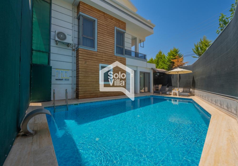 Villa Solo East — это вилла для отдыха с частным бассейном, расположенная в районе Чалыш города Фетхие. Благодаря близости к центру города она предлагает как спокойное, так и удобное проживание. Трёхэтажная структура виллы обеспечивает просторные и комфортные жилые помещения, а зона отдыха в саду позволяет приятно проводить время. Это идеальный вариант для тех, кто ищет прекрасный отдых.