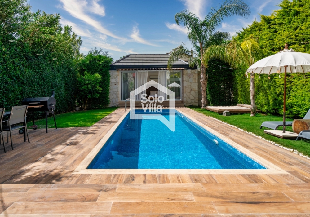 Главной особенностью виллы является полностью защищённый от посторонних взглядов частный бассейн. Это обеспечивает высокий уровень приватности и комфорта, особенно для гостей, ценящих уединение. Просторный сад, зоны для загара и уютные зоны отдыха делают ваш отпуск ещё более приятным.
