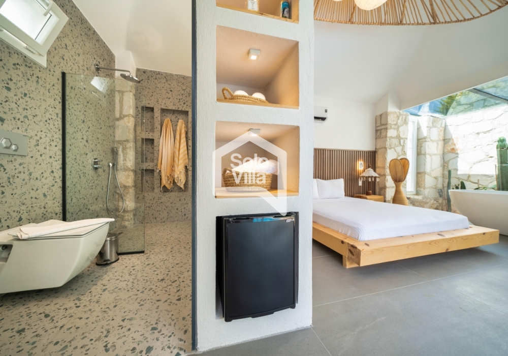 Все виллы имеют резервуар для горячей воды объемом около 160 литров, который нагревается за счет солнечной энергии. Напоминаем, что мы не несем ответственности за проблемы, вызванные отсутствием горячей воды из-за чрезмерного потребления горячей воды, за исключением случаев добросовестного использования.