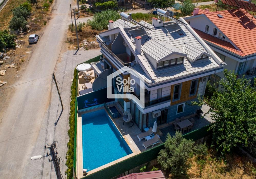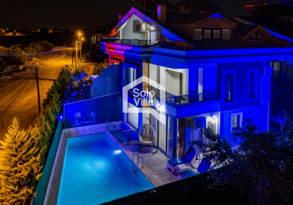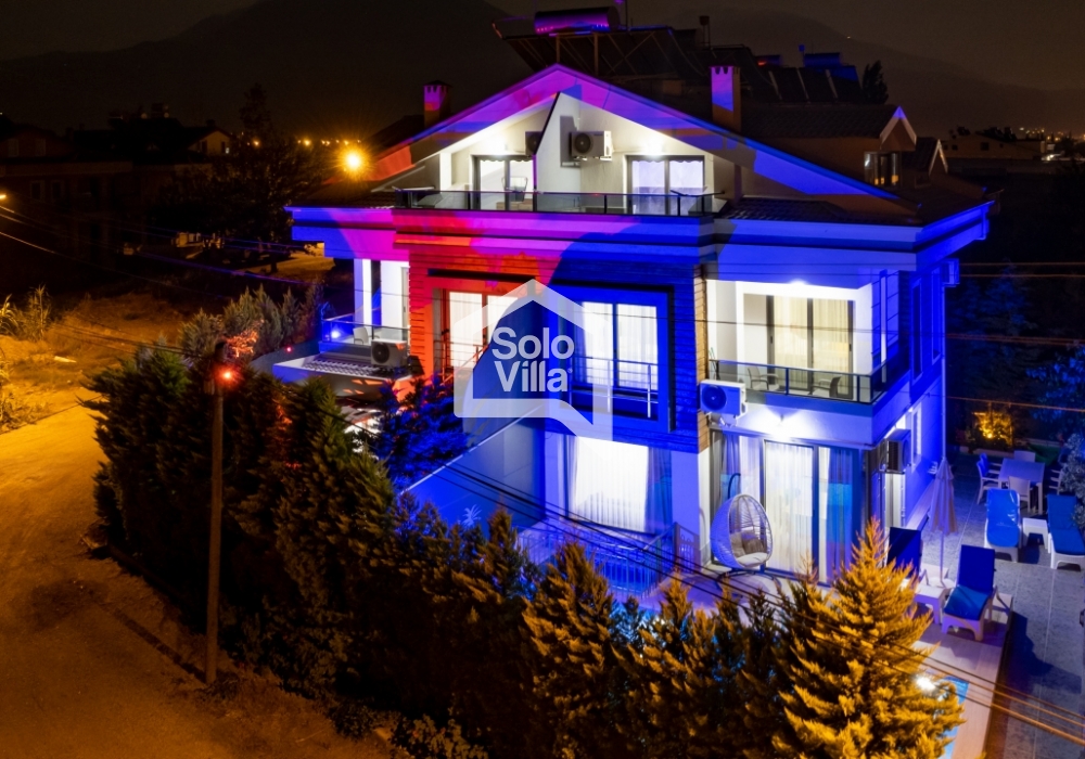 Villa Solo West — это вилла для отдыха с частным бассейном, расположенная в районе Чалыш города Фетхие. Благодаря близости к центру города она обеспечивает как удобный доступ, так и спокойный отдых. Трёхэтажная структура виллы предлагает просторные и комфортные жилые зоны, а зона отдыха в саду позволяет приятно проводить время.