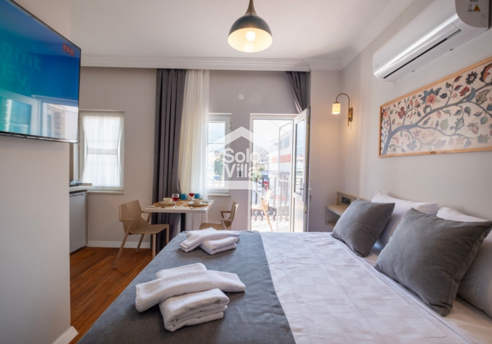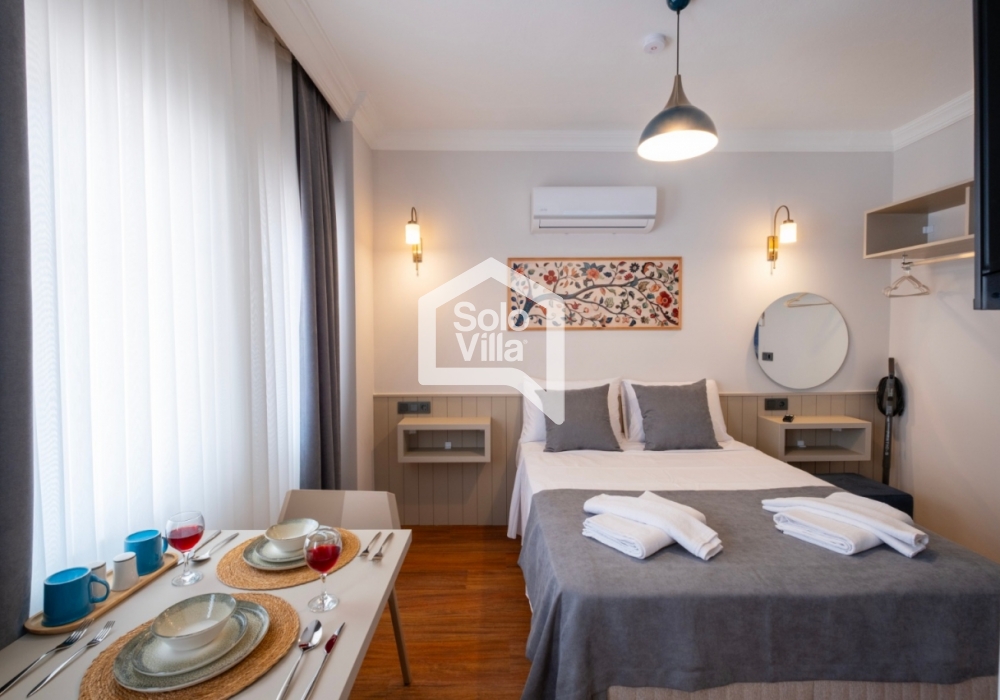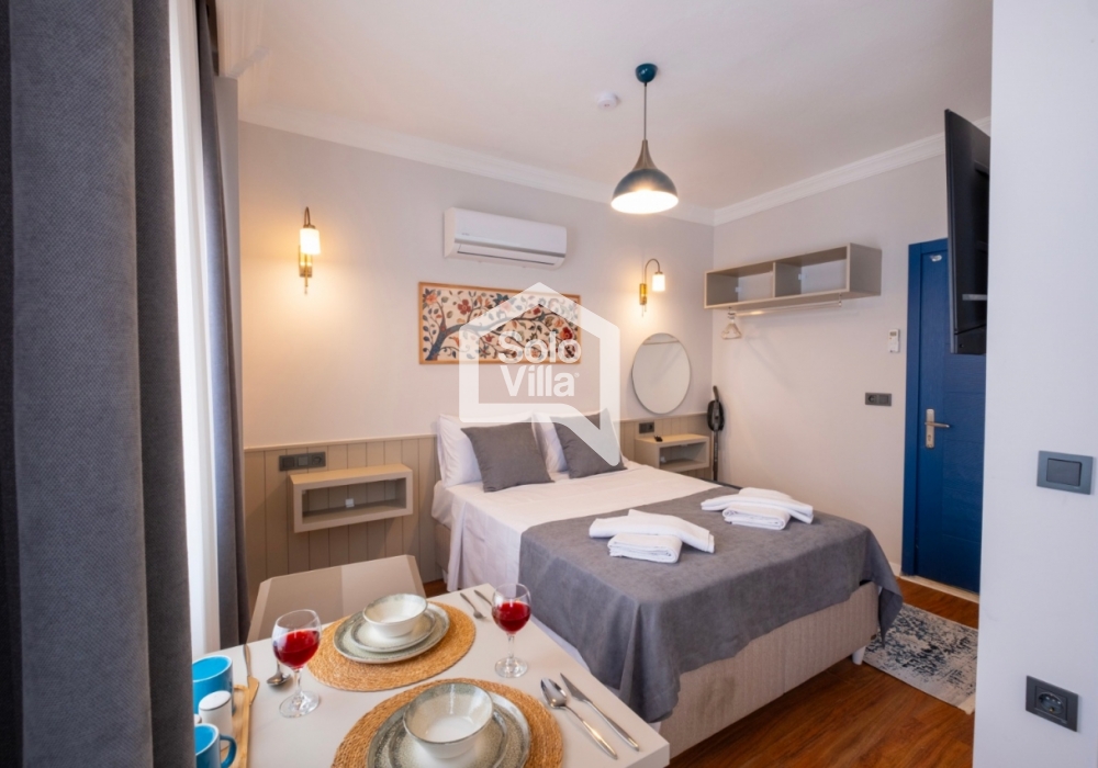 Şehir merkezine oldukça yakın konumda bulunan bu şirin stüdyo daire, 2 kişilik konaklama kapasitesi ile çiftler veya tek başına tatil yapmak isteyenler için ideal bir seçenek sunuyor. Çevresinde çok sayıda restoran, kafe ve diğer sosyal alanlar bulunan daire, hem dinlenmek hem de bölgenin güzelliklerini keşfetmek isteyenler için eşsiz bir fırsat.