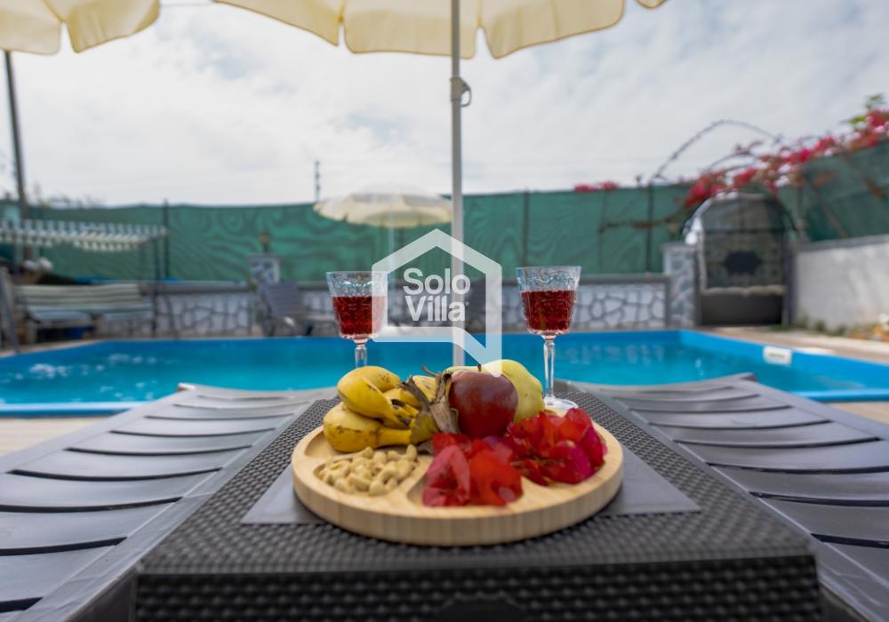 Havuz & Bahçe: Özel yüzme havuzu ölçüleri 7,40 x 3,40 m, derinliği 1,50 m. Geniş bahçede çocuk oyun alanı, oturma grubu ve barbekü imkanı vardır.