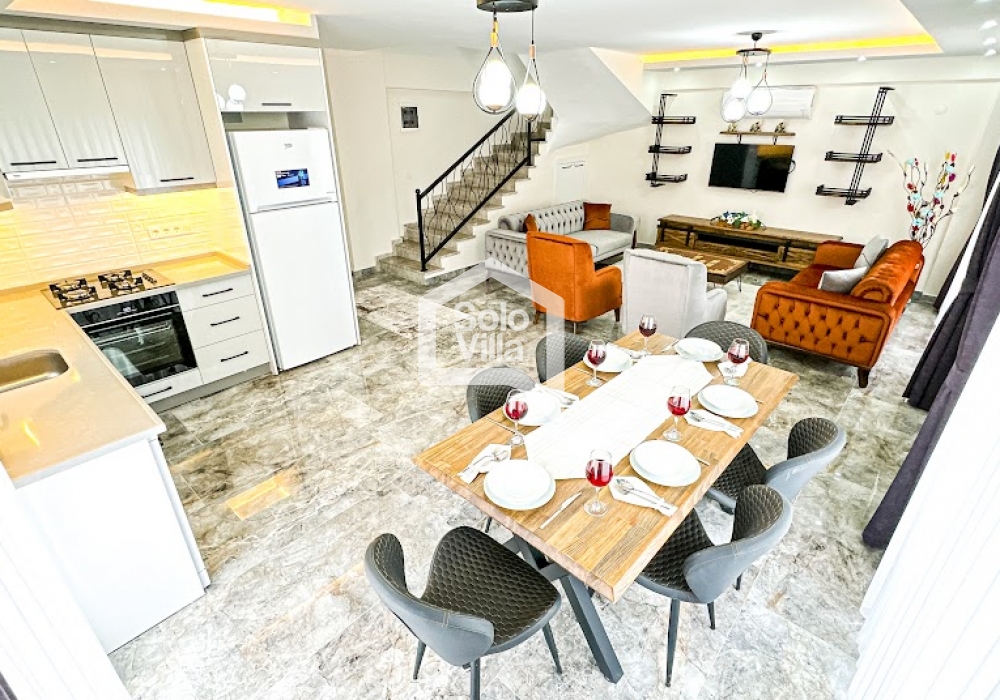 Villa Solo Göl, Fethiye Çalış Akarca Mahallesi’nde yer alan, özel havuzlu ve konforlu bir tatil villasıdır. Merkezi noktalara yakın konumu sayesinde hem huzurlu hem de ulaşımı kolay bir konaklama imkânı sunar. Araçsız tatil yapmak isteyen misafirler için de avantajlı bir lokasyonda bulunmaktadır.
