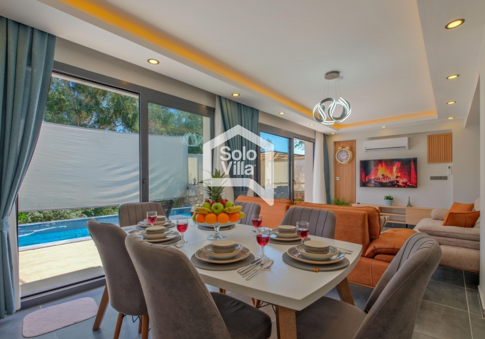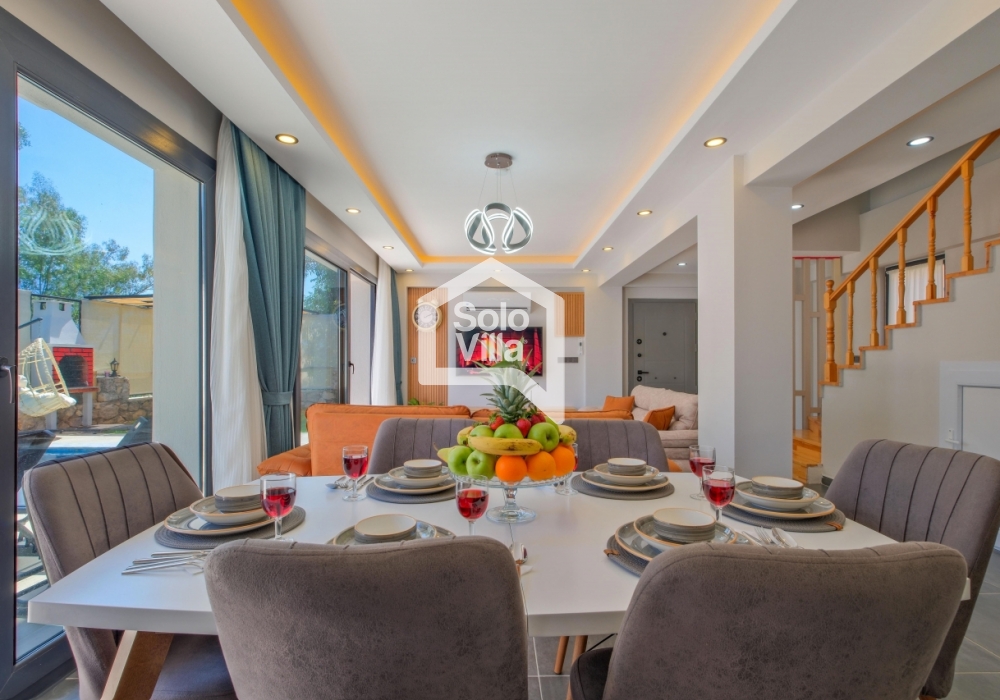 Villa Solo Leon 2, Fethiye Eldirek mevkiinde yer almakta olup sizlere huzurlu ve konforlu bir konaklama deneyimi sunmaktadır. 2 yatak odasıyla 4 kişilik konaklama kapasitesine sahip olan villamız, balayı çiftleri ve çekirdek aileler için ideal bir tercihtir. Ferah iç mekanları ve zarif tasarımı ile dikkat çeken Villa Solo Leon 2, doğa manzarasına hakim konumuyla keyifli bir tatil imkânı sunar.