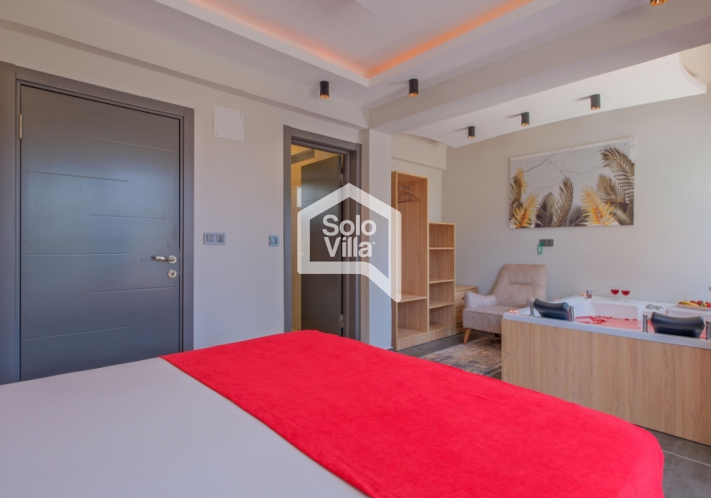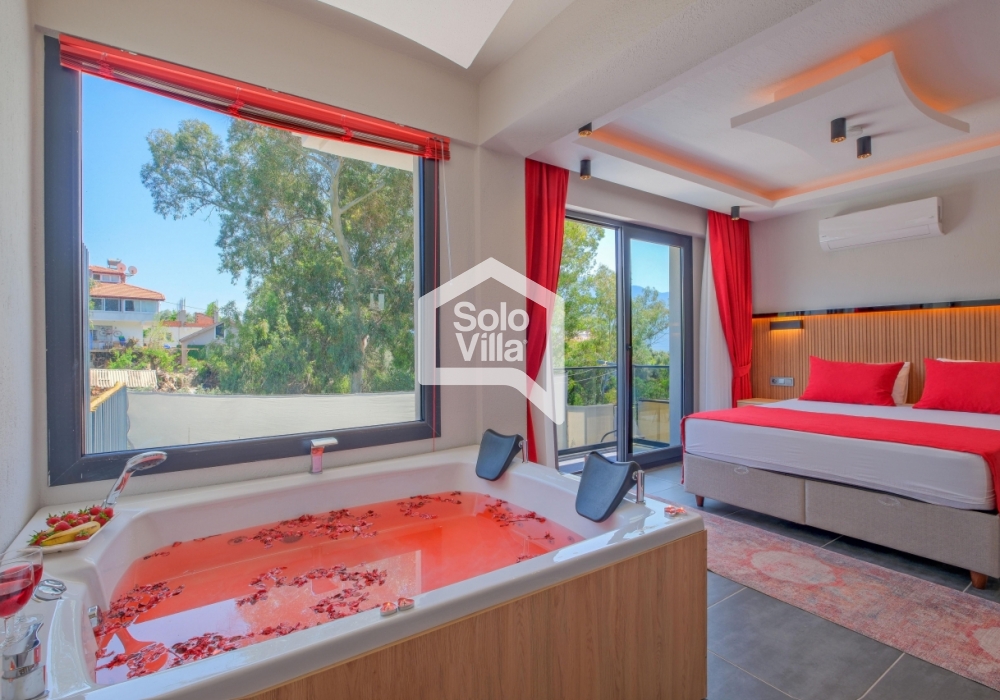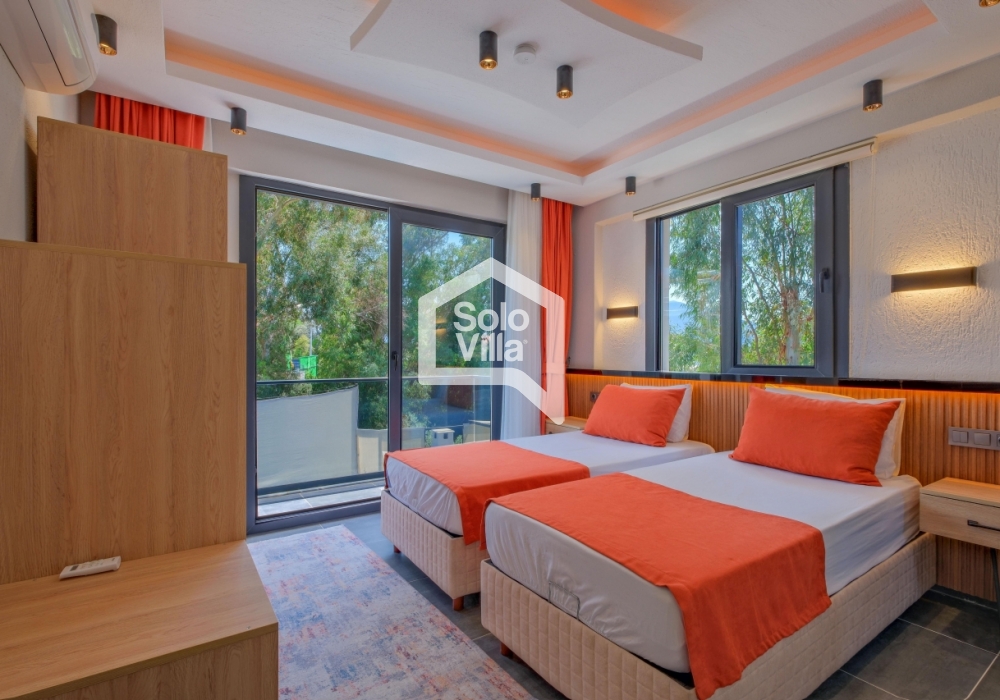 Villa Solo Leon 2’nin birinci yatak odasında çift kişilik yatak, ebeveyn banyosu ve jakuzi; ikinci yatak odasında ise iki adet tek kişilik yatak ve banyo bulunmaktadır.