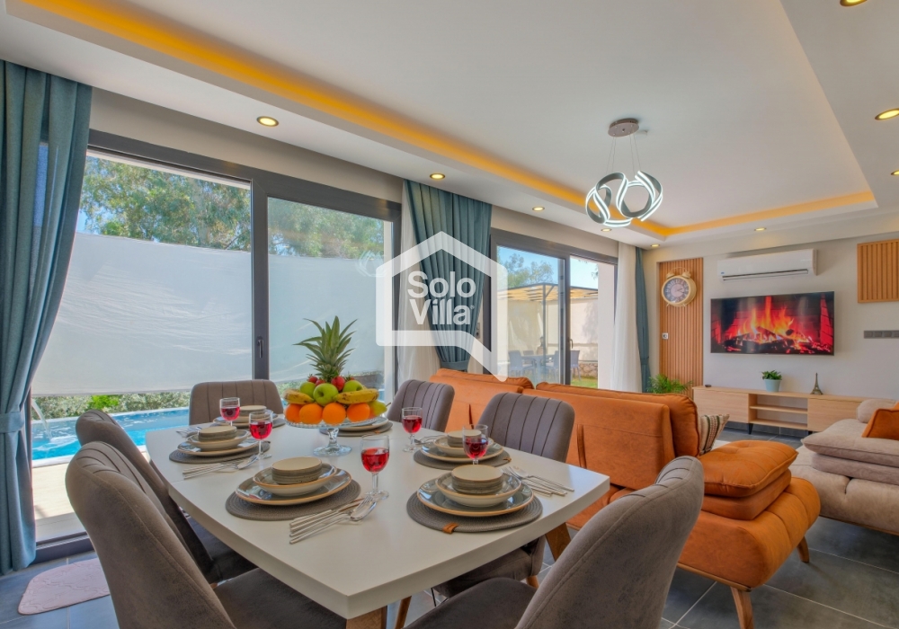 Villamızın özel yüzme havuzunda doyasıya yüzebilir, güneşin tadını çıkarabilirsiniz. Bahçe alanında kapasiteye uygun şezlong takımı, oturma grubu ve barbekü alanı bulunmaktadır. Havuz terasına açılan konforlu oturma odası ve tam donanımlı açık mutfak, tatilinizi daha keyifli hale getirir.