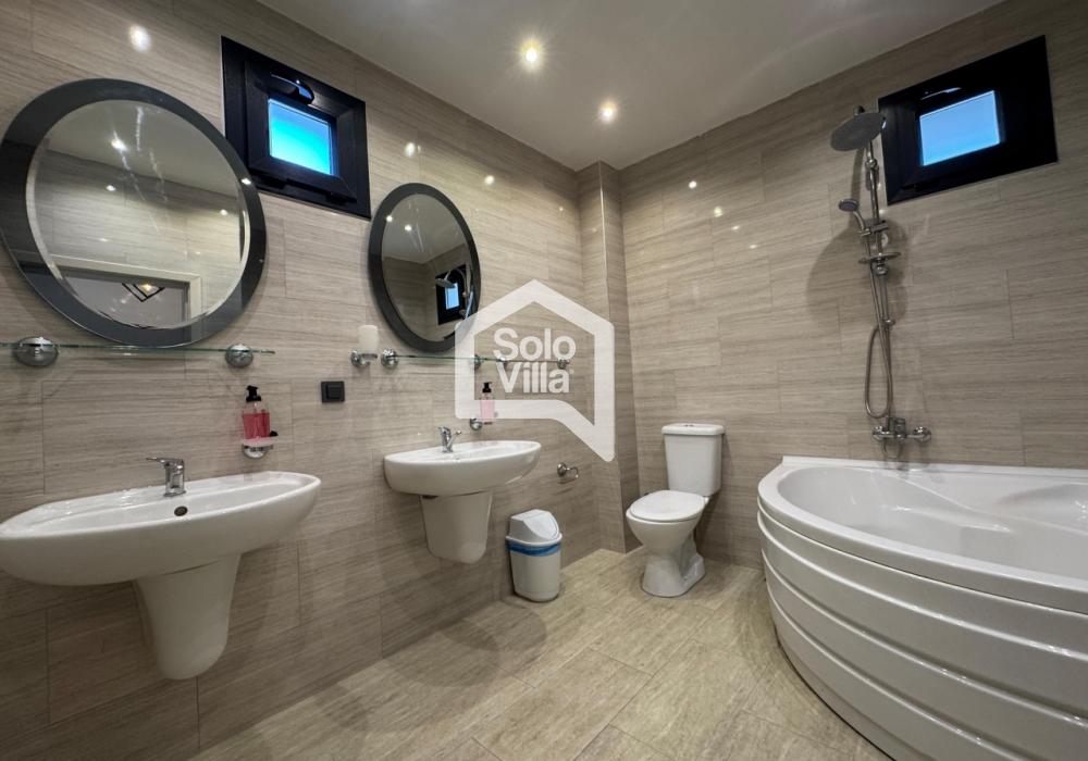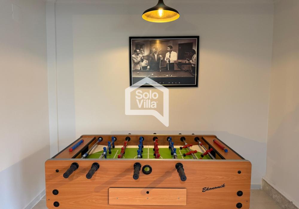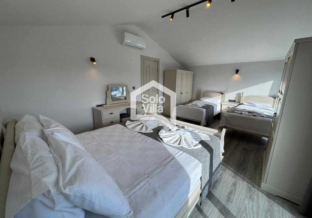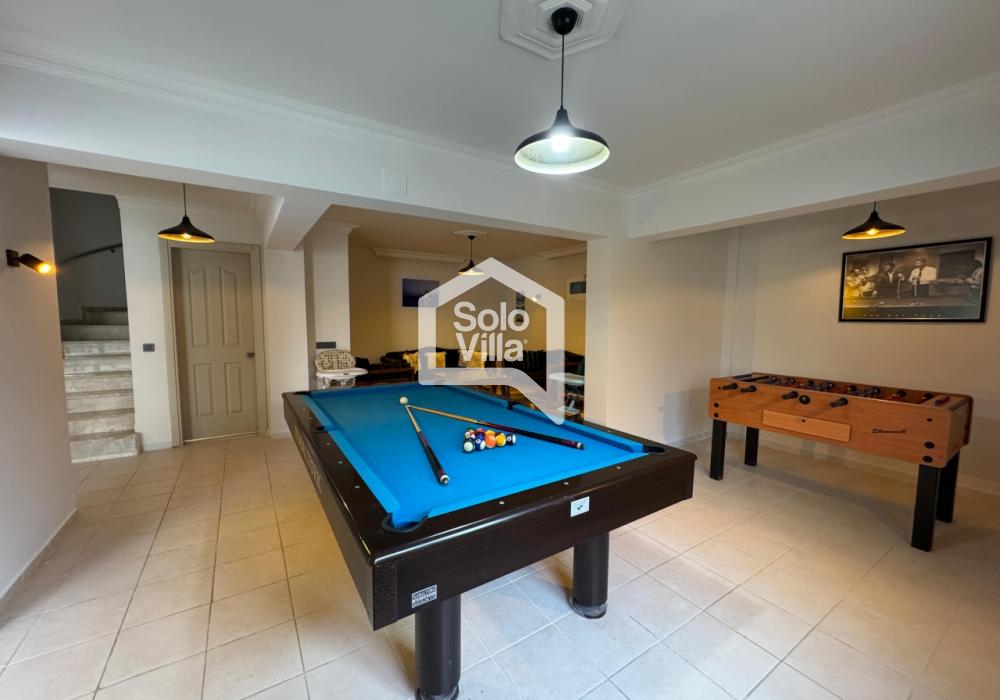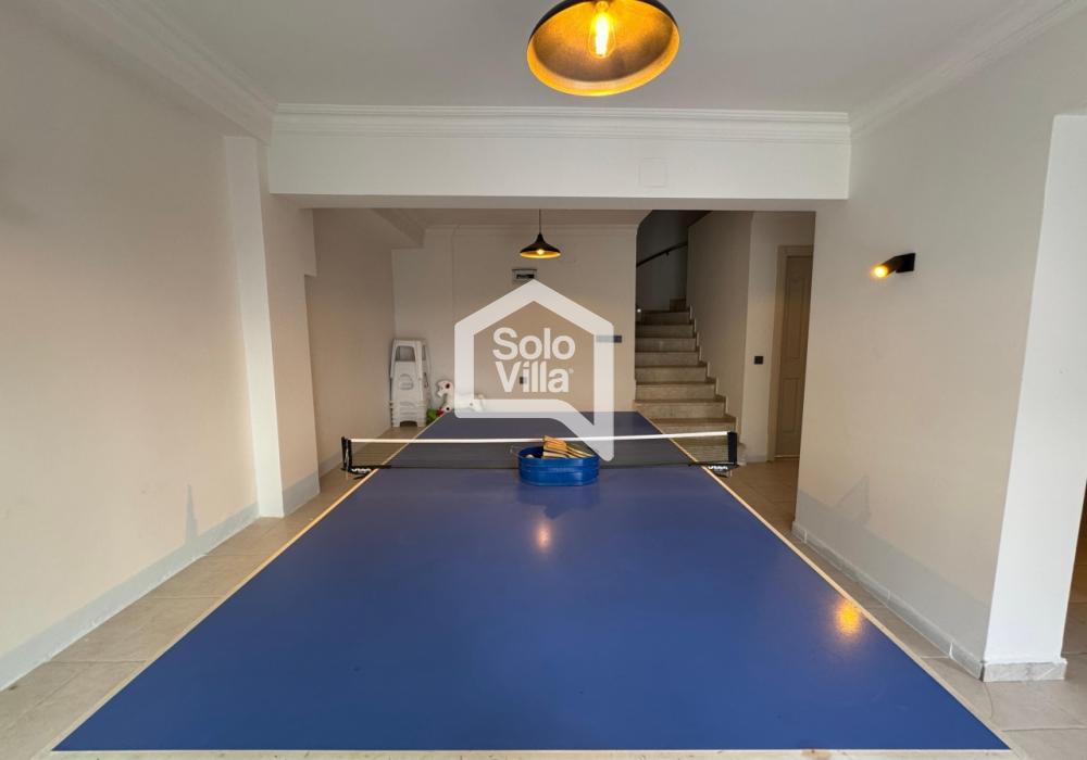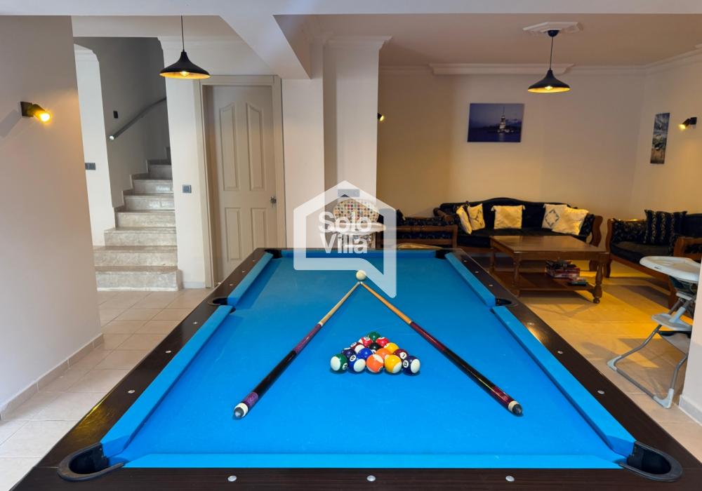 5 yatak odası ve 3 banyosu ile toplam 12 kişiye kadar konaklama imkanı sağlayan villa, ferah yaşam alanları ve fonksiyonel oda düzeniyle herkes için konforlu bir kullanım sunar. Geniş bahçesi, özel yüzme havuzu ve sosyal alanlarıyla tatilinizi keyifli ve unutulmaz hale getirir. Oyun odasında bilardo ve masa tenisi bulunması, villayı sadece bir konaklama alanı değil aynı zamanda eğlence merkezi haline getirir.